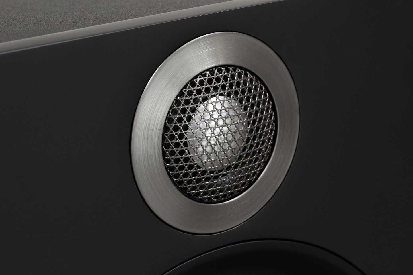 За верхнечастотный диапазон отвечает запатентованный, «сверхнизкоискажающий», по данным B&W, фирменный алюминиевый твитер Decoupled Double Dome с двойным куполом, способный, по их же словам, «выявить удивительные уровни детализации в вашей музыке». Пищалка защищена изящным серебристым грилем с «треугольным» плетением в отлично проработанном алюминиевом обрамлении.