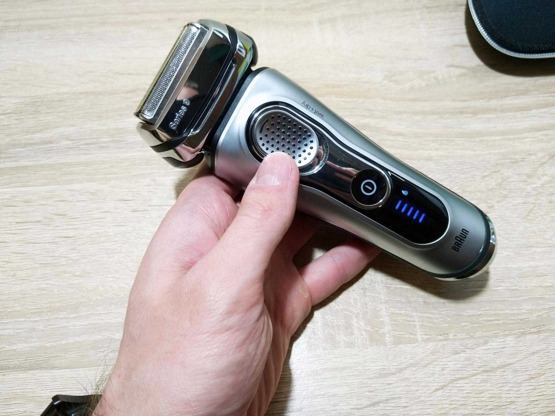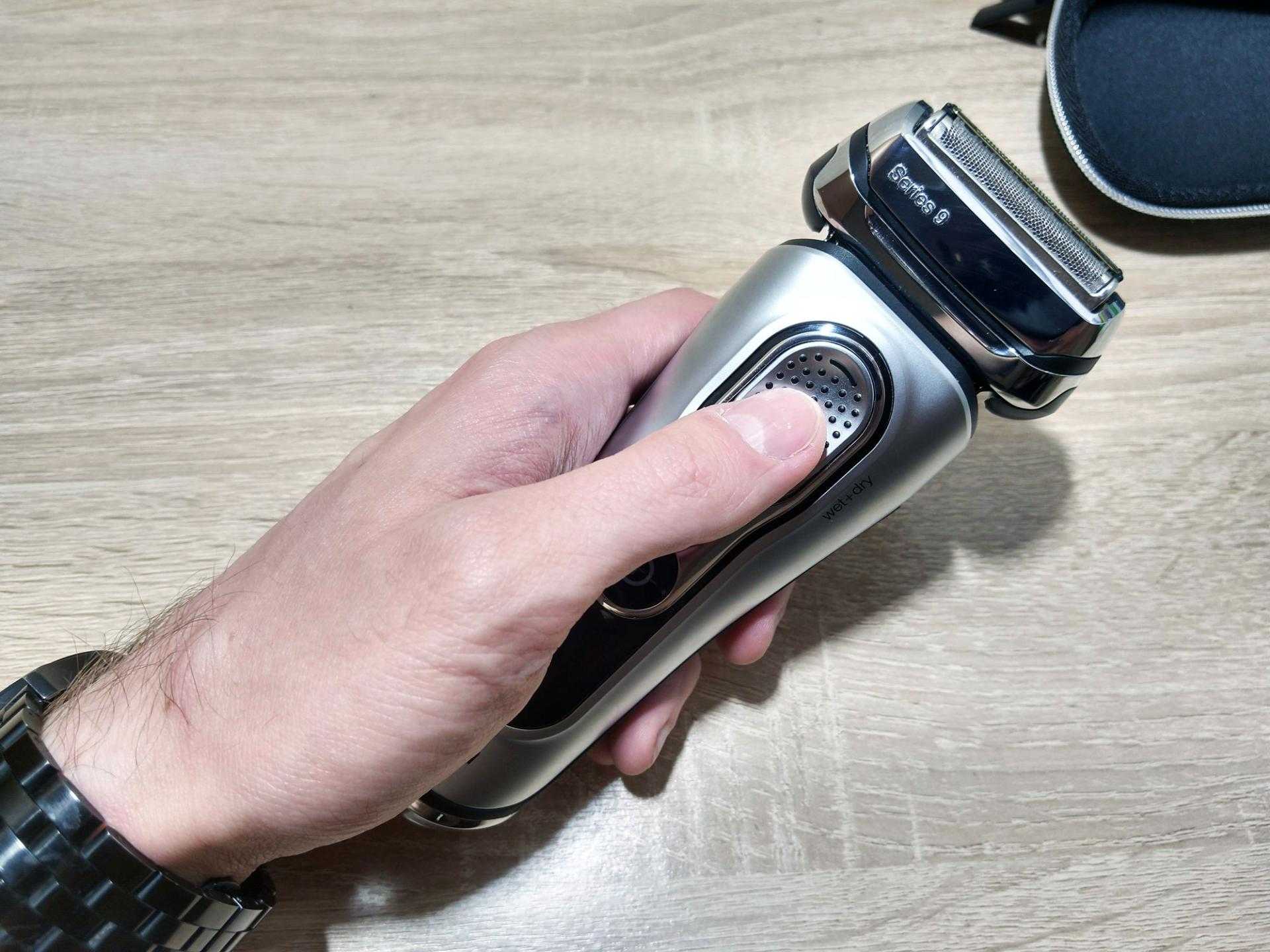 У Braun 9291cc Series 9 есть также режим «путешественника», когда, задержав кнопку включения на несколько секунд, бритва блокируется от случайных включений. Не разрядится, если вдруг вы забросили её в сумку или рюкзак без комплектного футляра.