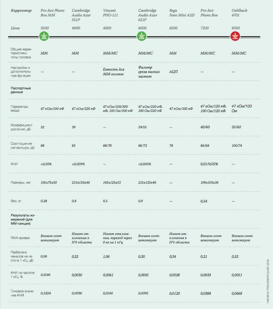 Несмотря на то что в этом тесте я рассматривал совсем недорогие и несложные технически аппараты, подтвердилось то, что и должно было подтвердиться. В этом диапазоне все аппараты отличаются друг от друга, и в плане звучания имеют не намного меньше различий, чем имеют между собой аппараты более дорогие. Сравнивать фонокорректоры за 5000 и за 50 000 рублей, конечно же, некорректно, но в обозначенных рамках тест получился вполне информативным. Каким бы ни был планируемый бюджет на покупку техники, распорядиться имеющимися средствами всегда лучше с максимальной отдачей, поэтому, выбирая бюджетный компонент в свою систему, лучше отойти подальше от большинства сайтов и форумов в рунете, где железка дешевле пары тысяч долларов или евро вообще ни за что не считается, и выбирать все на свой слух, по своим потребностям и предпочтениям — ведь именно вам, а не кому-то еще слушать свое приобретение, а от правильности выбора будет в немалой степени зависеть степень получаемого от звука и от музыки удовольствия. В отношении самого бюджетного сегмента это выбор сложнее, чем в случае с аппаратами дорогими. Дорогая техника в большинстве своем не имеет явных и значимых недостатков в звучании, а разница сводится к тому, как она звучит на ваш вкус. В бюджетном же сегменте всегда будут встречаться аппараты, звучащие совершенно непотребно, так, что в их случае речь идет не о каком-то почерке или стилистике звучания, а об откровенном звуковом мусоре. И таких аппаратов, безусловно, нужно избегать.