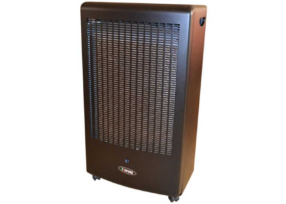 Газовый конвектор этой компании обладает многими положительными свойствами, например, высоким КПД, безопасностью за счет закрытой камеры сгорания, а также независимостью от электричества. Из минусов – высокая цена, вес и размеры прибора.