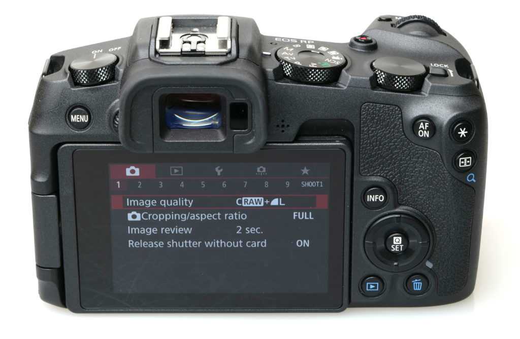 Вы не получаете дополнительный дисплей или новую кнопку «Режим». Вместо этого EOS RP имеет традиционный диск режимов и два дополнительных диска для изменения настроек. Это не обязательно плохо, так как с этой камерой не требуется много времени для ее изучения. Вы также получаете специальную кнопку для записи видео, переключатель для блокировки органов управления и многофункциональную кнопку для быстрого доступа к режимам привода, баланса белого и т. Д., Как на EOS R.