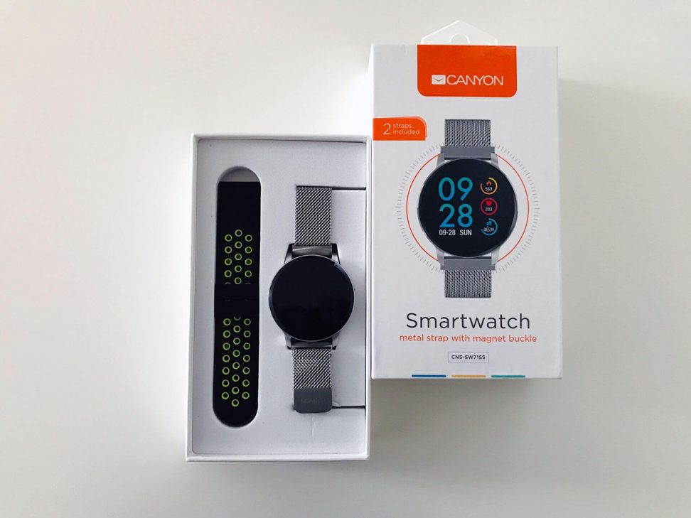 Смарт часы Canyon CNS-SW71SS начинают приятно удивлять сразу же после распаковки. В комплекте идут сразу два ремешка, причем ремешка абсолютно разных. Один из них металлический с магнитной застежкой, второй – полиуретановый. Оба ремешка выполнены качественно и выглядят модно. Их замена не вызывает труда.