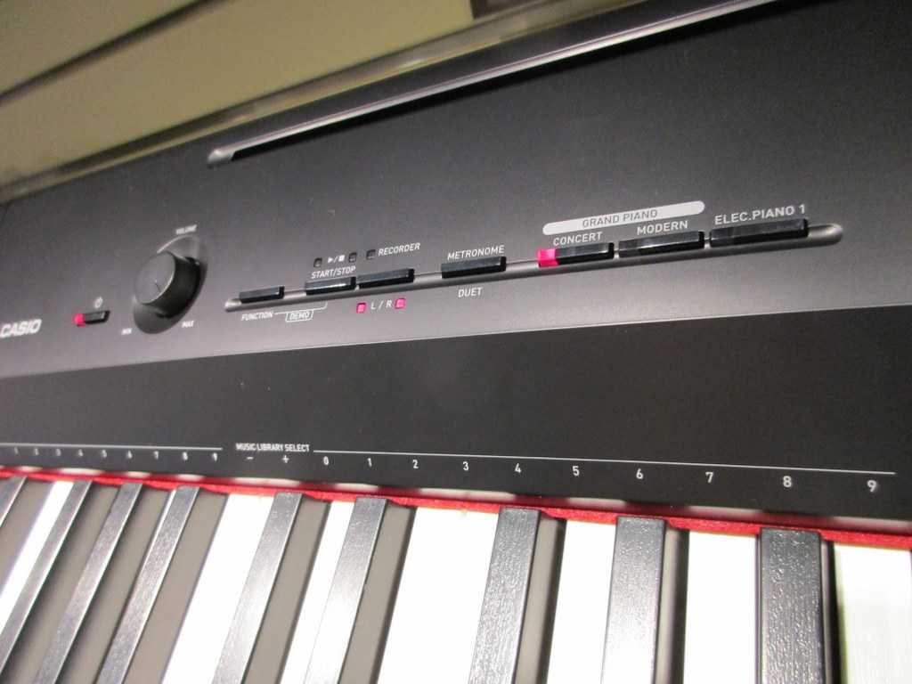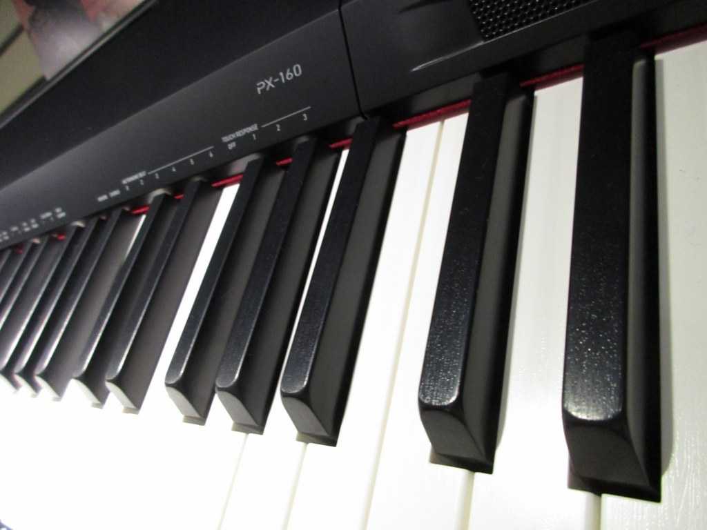 Casio PX160 – один из немногих инструментов доступного ценового сегмента, который укомплектован трехпозиционными датчиками. Он хорошо отзывается на частое нажатие одной и той же клавиши без сбоев и заминок. Система моделирования молоточковой механики Tri-Sensor Scaled Hammer Action II имитирует поведение клавиатуры по аналогии с классическими инструментами: с уменьшением регистра возрастает сопротивляемость клавиатуры.