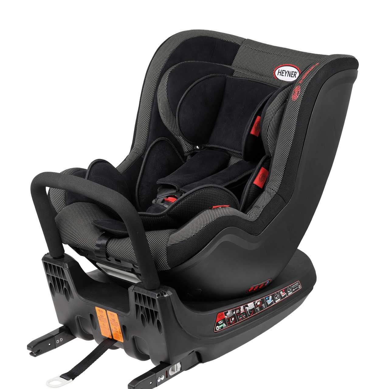 Универсальное устройство для перевозки малыша ростом до 105 см, оно может поворачиваться на 360°. Установка проводится против движения авто. Благодаря вращающемуся креслу посадка малыша проводится легко.