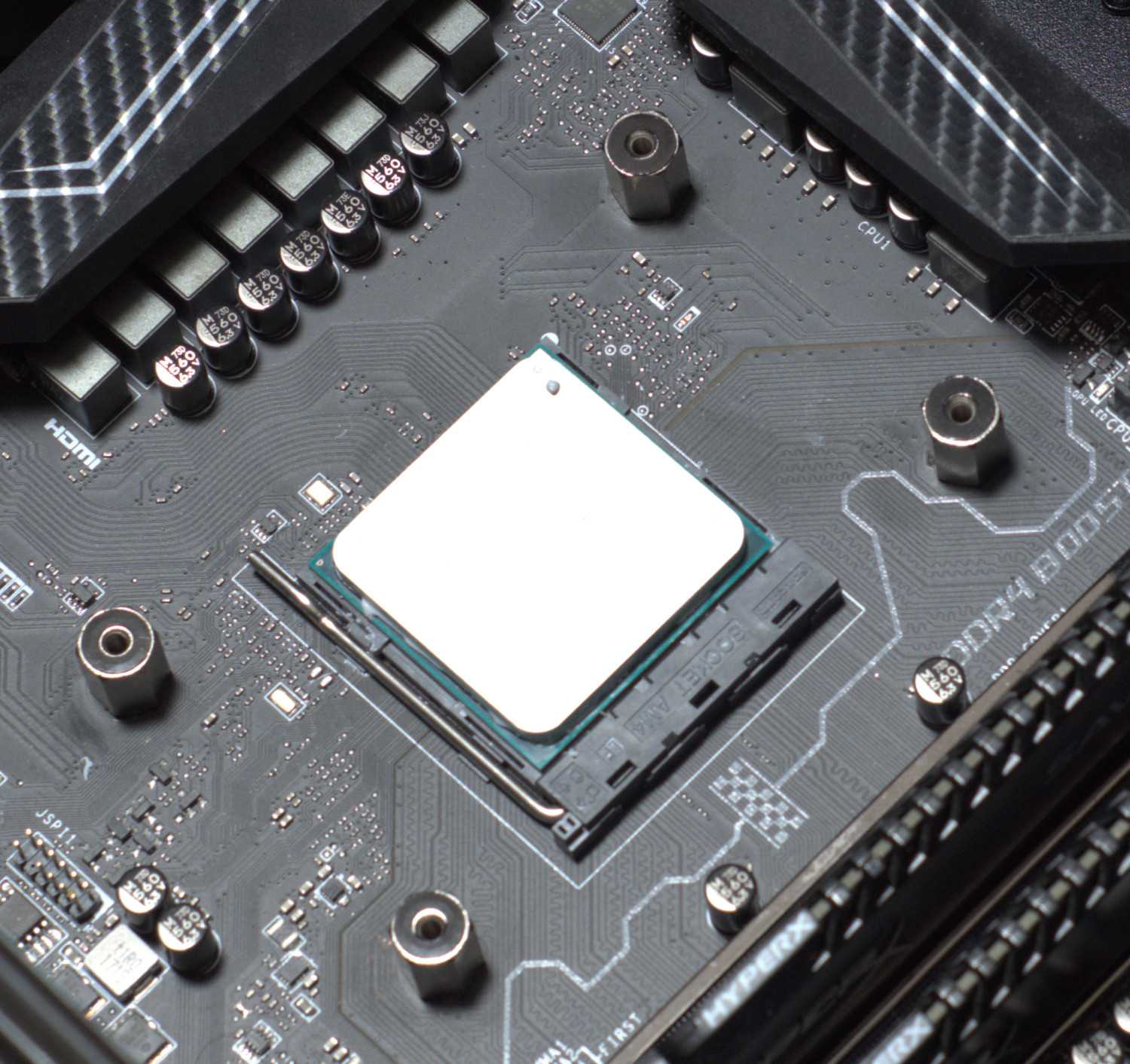 Собираем универсальный бекплейт и фиксируем его 4 шайбами на материнской плате.