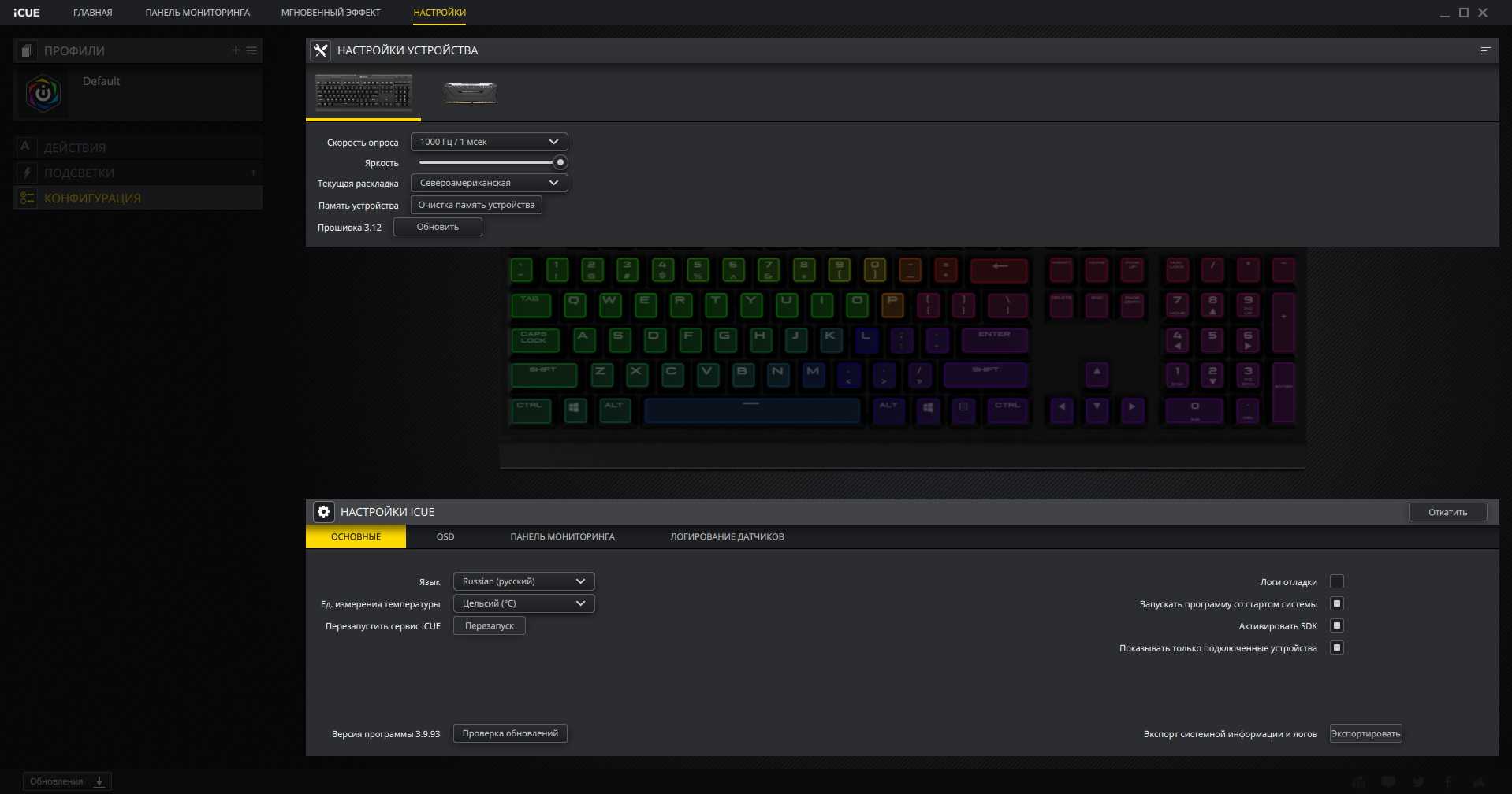 Всё управление клавиатурой происходит в фирменной программе Corsair Utility Engine. Программное обеспечение функциональное, но далеко не самое удобное, придётся немного разобраться. Кстати, диска в комплекте нет, так что скачать программу нужно будет с сайта производителя.