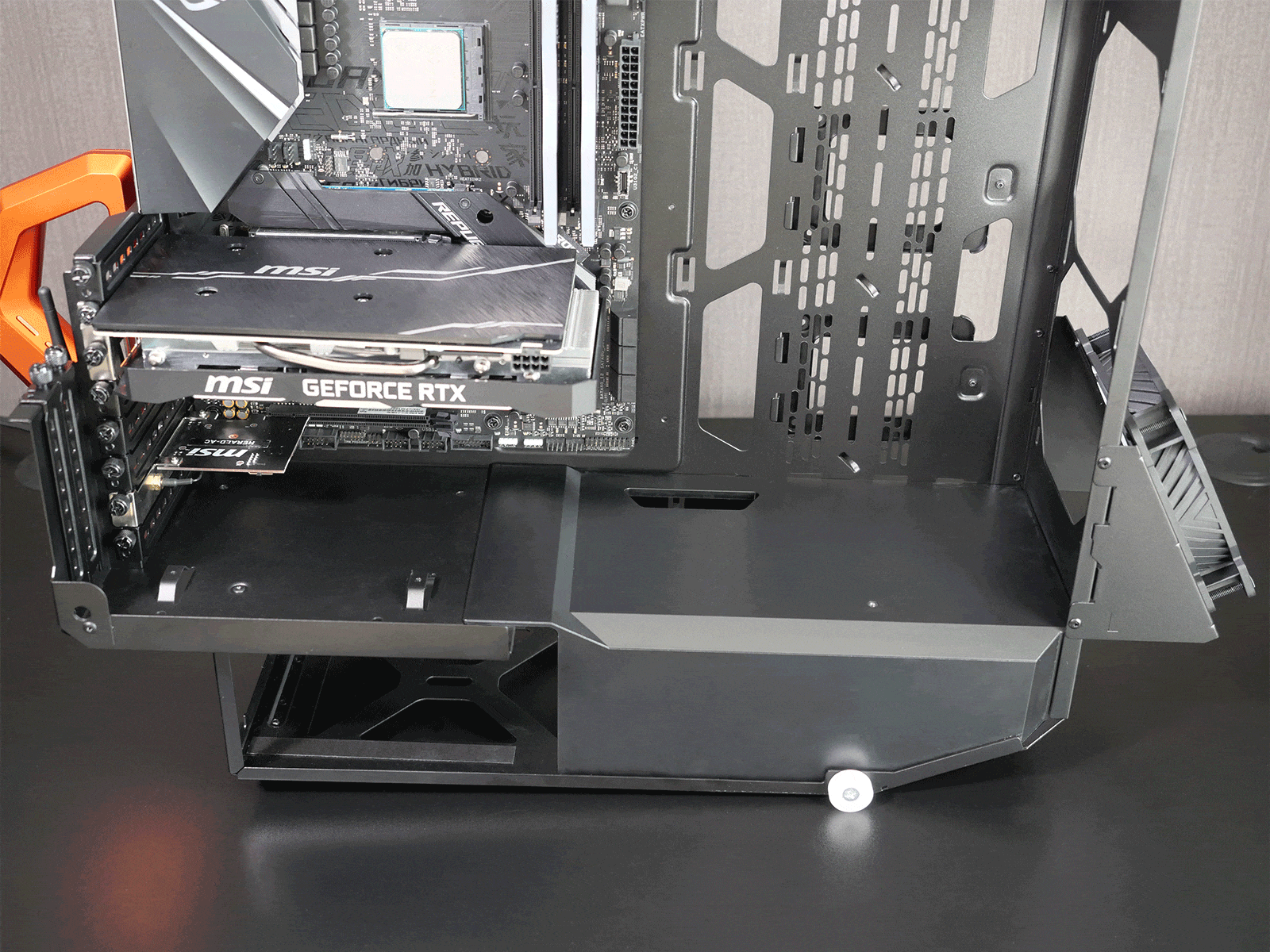 Длинным видеокартам ничего не помешает, влезут крупные экземпляры до 350 мм длиной, даже при условии, что справа от материнской платы уже прикручен радиатор СЖО. Учитывая приличные заявленные размеры систем охлаждения у референсных плат от NVidia на базе грядущих RTX 3000 серии, это — немаловажный факт.