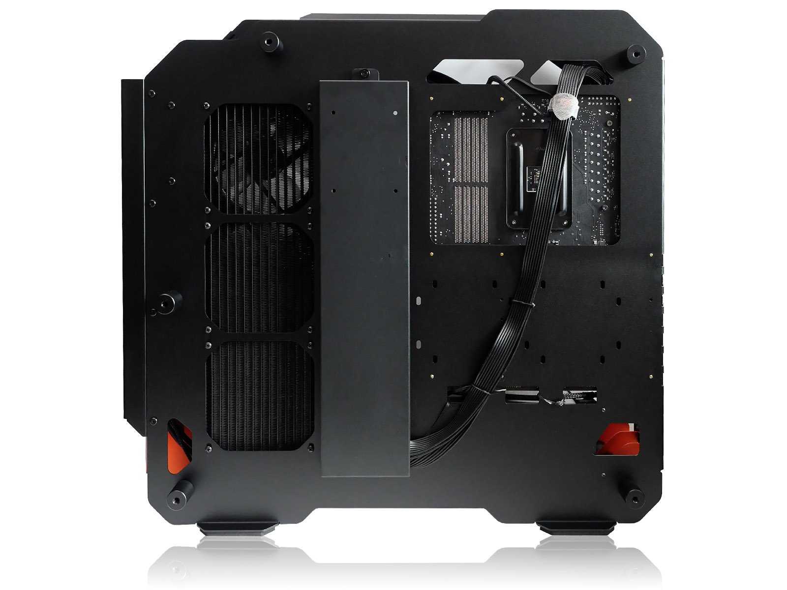 В крошечный корпус вы можете поместить двухслотовую видеокарту длиной до 350 мм, а под низ — до двух 120-мм вентиляторов толщиной 12,5 мм. Вы можете установить в mini-ITX корпус полноразмерный ATX-блок питания! Правда, длиной не более 140 мм и с особым расположением разъёма питания… но об этом позже.