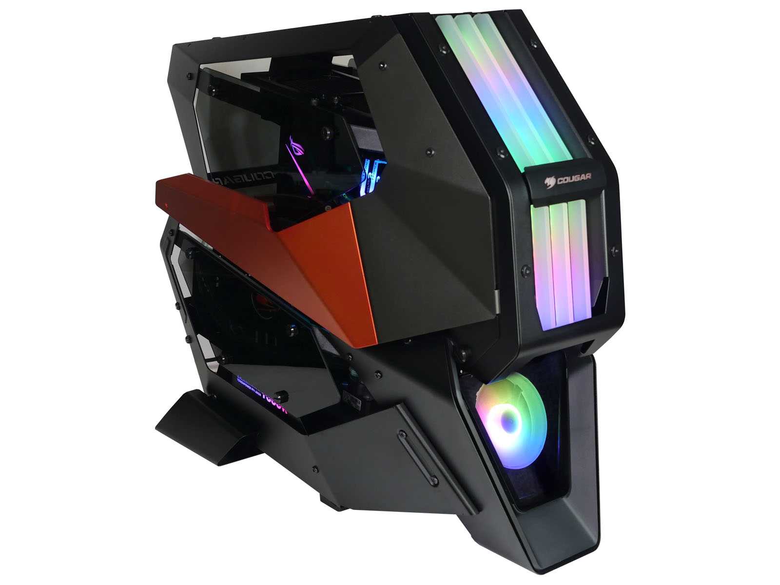 Нельзя не отметить, что при его создании уделили немало внимания не только внешнему виду, но и жесткости конструкции, которая фактически большей частью держится на двух крупных опорах и задней стенке рамной конструкции. Толщина металла и боковых панелей из закаленного стекла подобраны с хорошим запасом прочности. Для сборки ПК на базе топовых комплектующих препятствий не будет, корпус готов к конфигурациям с производительными жидкостными системами охлаждения и несколькими видеокартами. Конечно, создание своеобразной «иконы стиля» не обошлось без мелких нюансов и ограничений, которые наверняка со временем отшлифуют или немного изменят в будущих модификациях, и тогда этот корпус можно по праву будет назвать культовым. На сегодня же Cougar Conquer — это один из самых красивых и стильных корпусов, производимых «на потоке», который придется по душе энтузиастам, фанатеющим от вычурных форм, броских агрессивных панелей, ярких подсветок и необычных технических решений.
