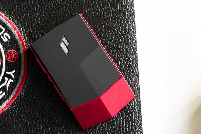 Plenue V получил самый необычный дизайн, клиновидный корпус из алюминия ярко-красного цвета сильно выделяется на фоне собратьев. Задняя крышка из чёрного софт-тач пластика сложной формы отлично контрастирует с остальными поверхностями. Фанатам спокойных цветов подойдёт обыденный серебристый вариант. В самом толстом месте — 17 мм, но покатость делает свое дело, плеер отлично лежит в кармане джинсов.