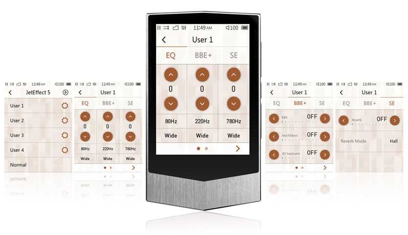 Стоит отметить, что все они превосходят неспециализированные устройства, будь то обычные смартфоны или MP3-плееры, и эта разница сильно заметна. Представленное выше описание, в первую очередь, требуется для сравнения сегодняшней троицы. Что касается характеров звучания, COWON предлагает фирменный эквалайзер JetEffect 5 с 48 пресетами, три из которых можно настроить по вкусу. Отдельного внимания заслуживает алгоритм BBE и серия профилей на её основе. Технология предназначена для выравнивания характеристик звучания до уровня живого звука.
