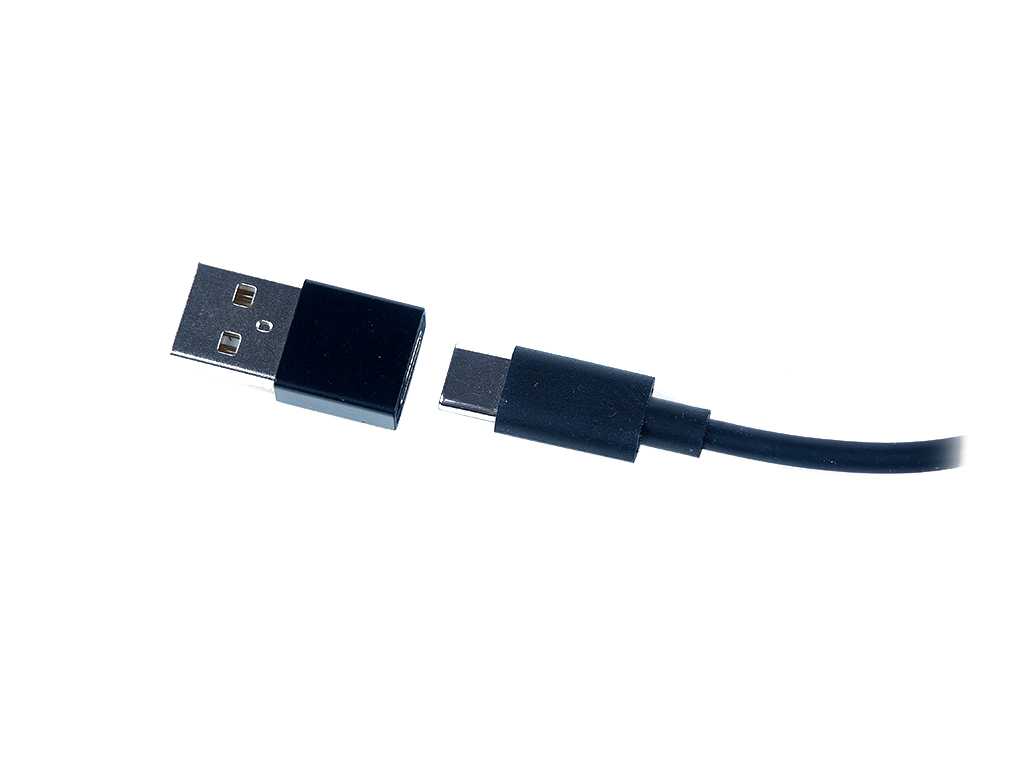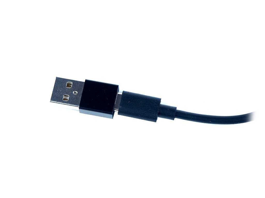 С противоположной (верхней) части пластиковой коробочки выходит короткий кабель длиной 10 см, на конце которого разместился разъем USB-C. Разъем выполняет как функцию питания, так и активно обменивается данными. Кабель упругий, покрыт силиконовой оболочкой и не очень хорошо держит форму. На тыльной стороне контейнера в верхней и нижней части имеются силиконовые накладки. Видимо, для того чтобы легкая пластиковая коробочка не сильно каталась по поверхности стола.