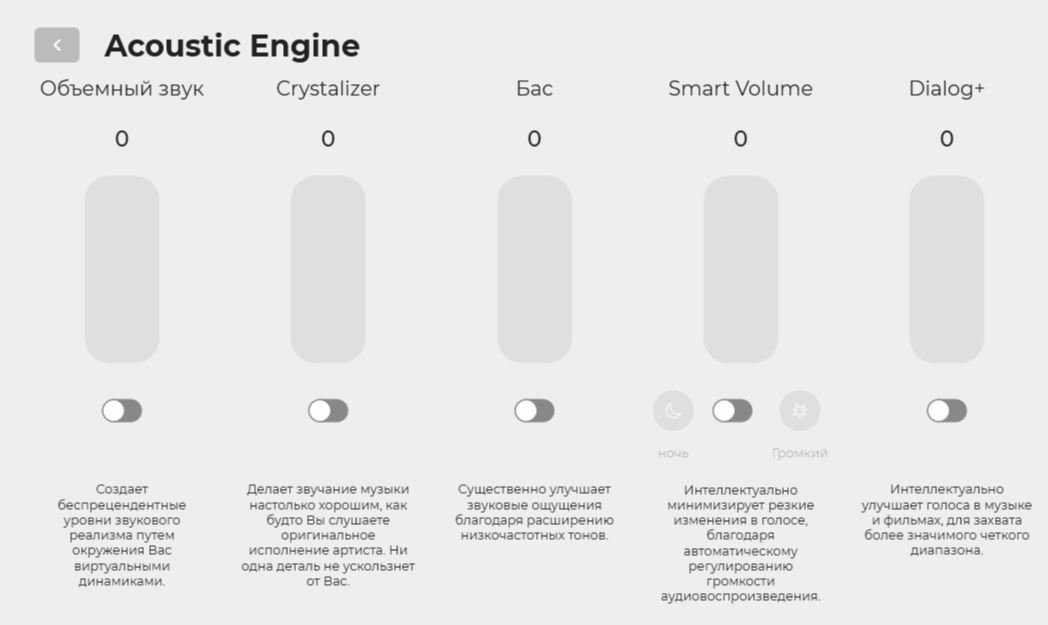 Звуковой режим – включает и регулирует уровни Acoustic Engine.