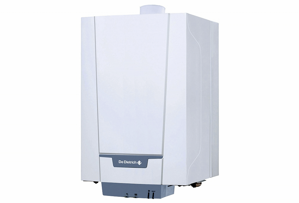- Конденсационные версии бренда «Де Дитрих» оборудованы дымоходной трубой ломаного типа, ее направление неоднократно меняется. Такое решение обеспечивает аккумуляцию тепла, и воздух выходит наружу почти остывшим.