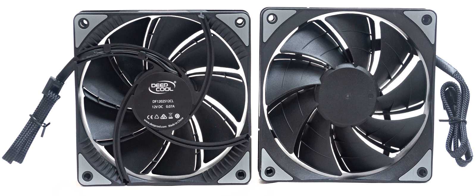 Оба вентилятора поддерживают ШИМ-управление и работают в диапазоне 500-1200 об/мин, как и заявлено производителем.