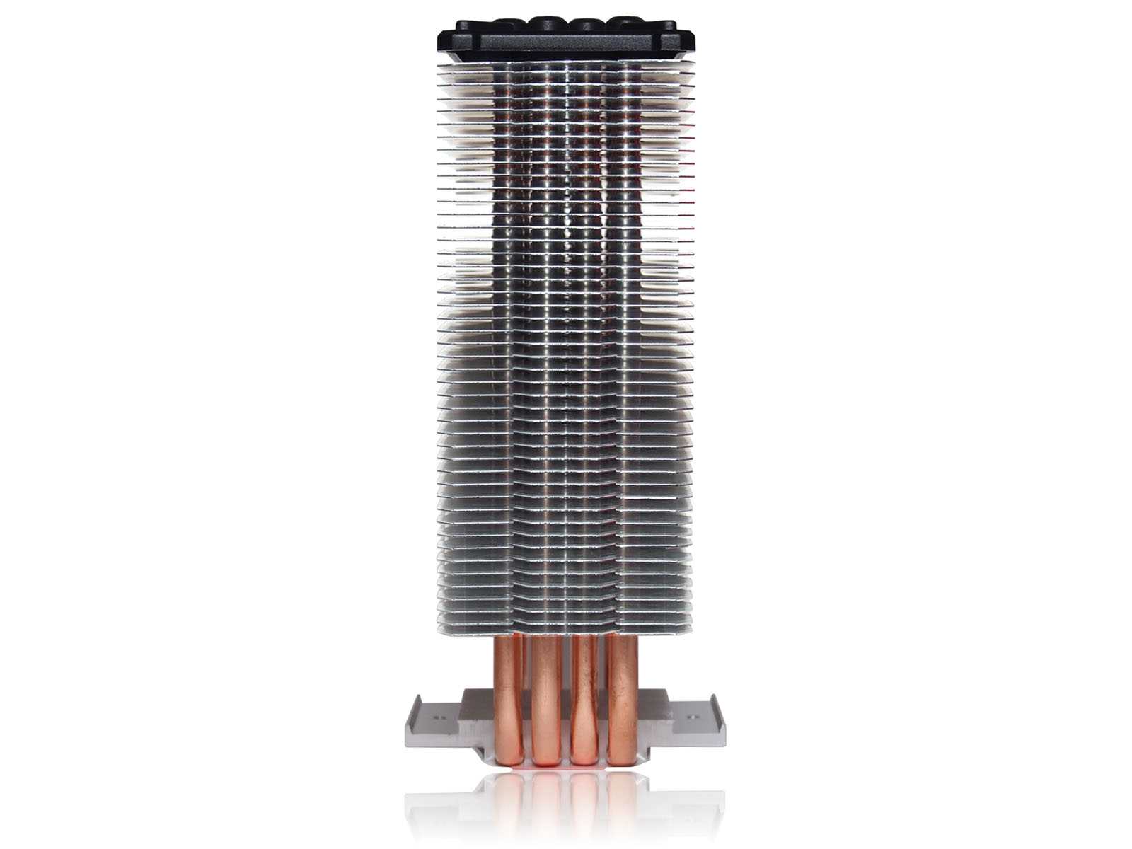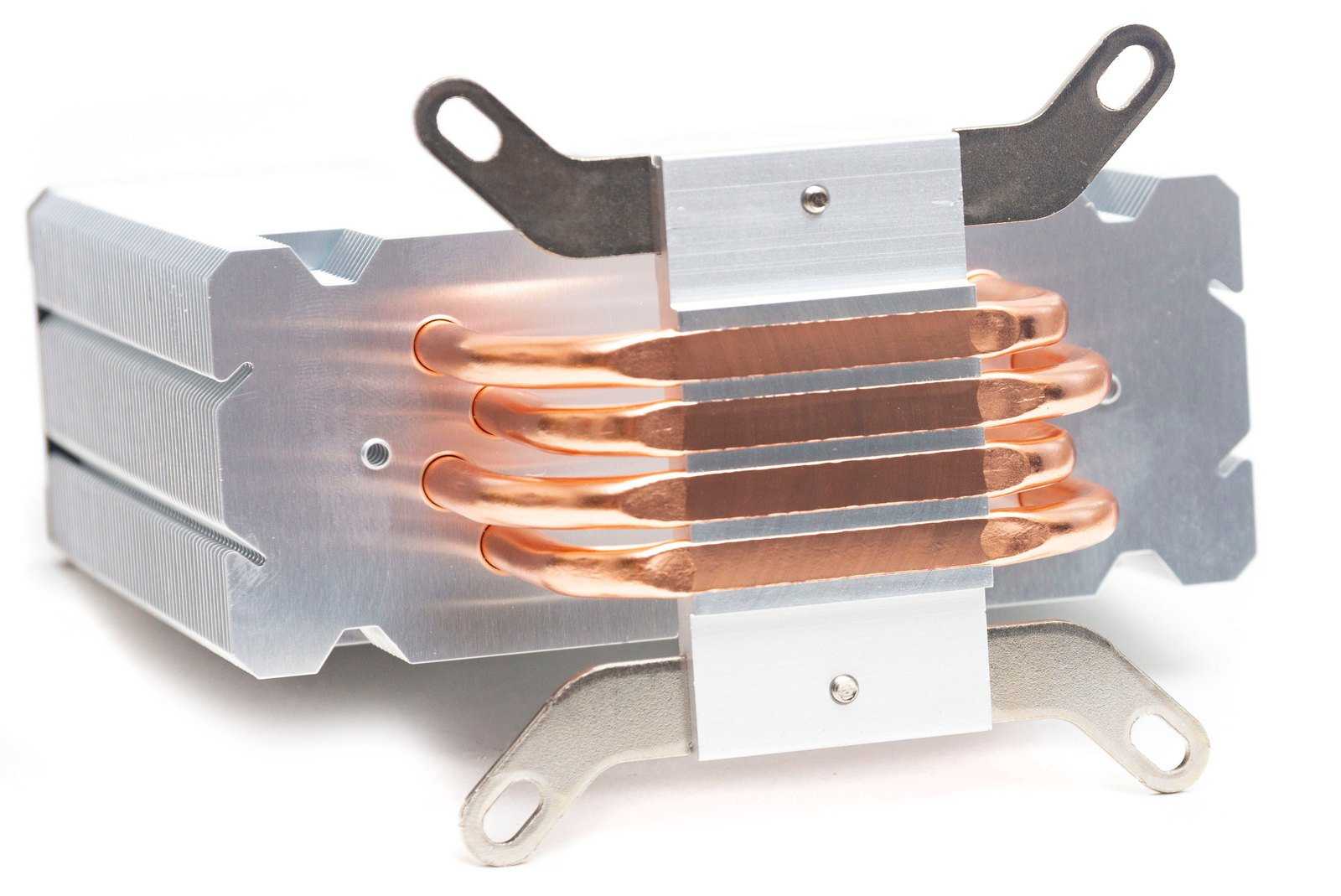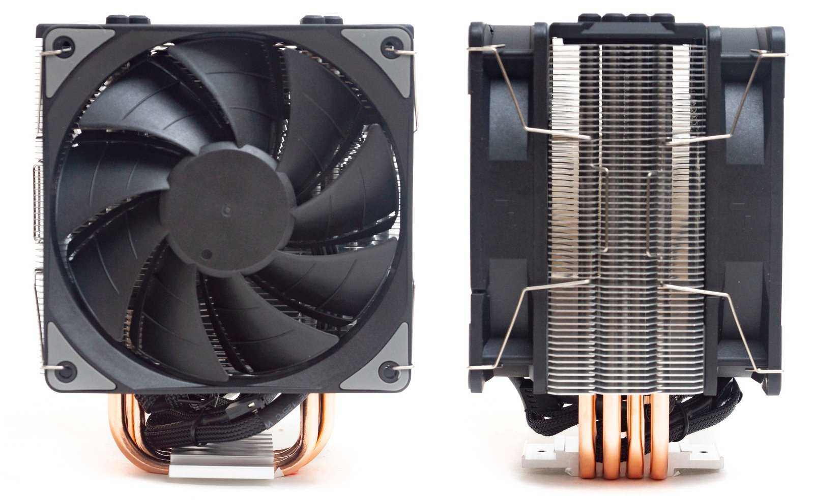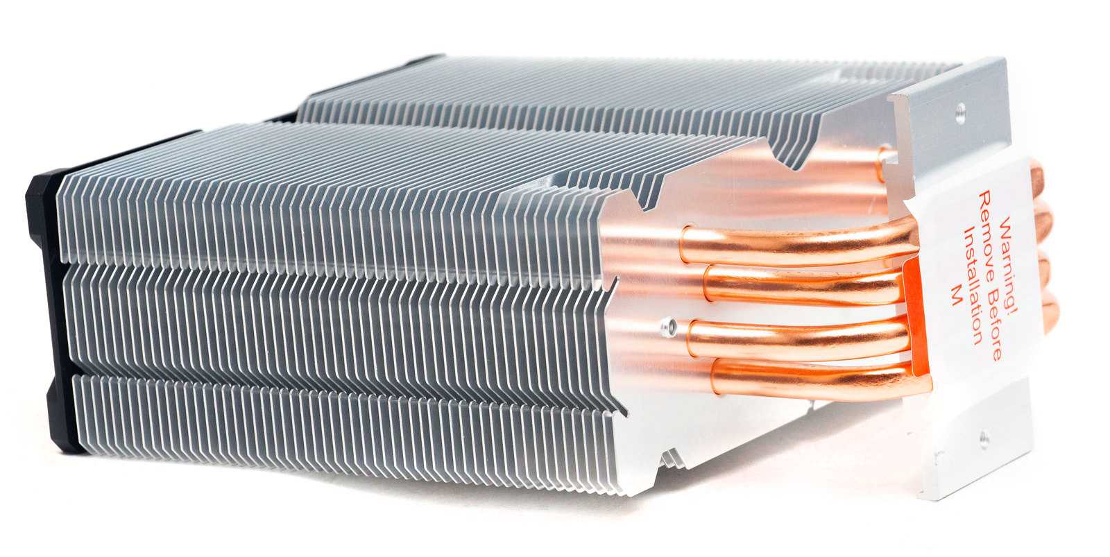 Пластины нанизаны на четыре медные тепловые трубки диаметром 6 мм. Трубки имеют U-образную форму и впрессованы в подошву, прижимающуюся к крышке процессора.