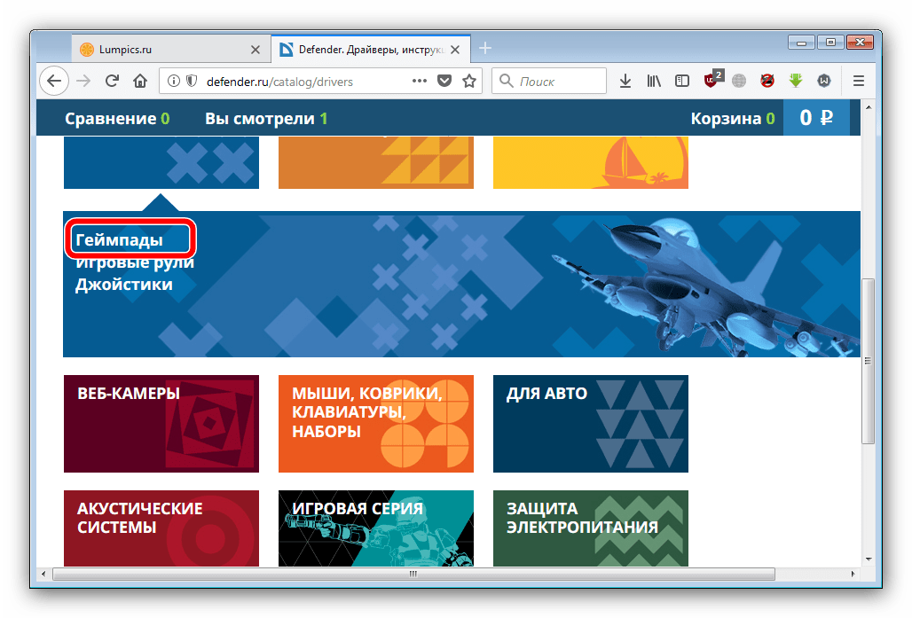 Далее следует выбрать устройство, к которому хотим скачать драйвер. В нашем случае это «Игровые манипуляторы» — нажмите на соответствующую кнопку.