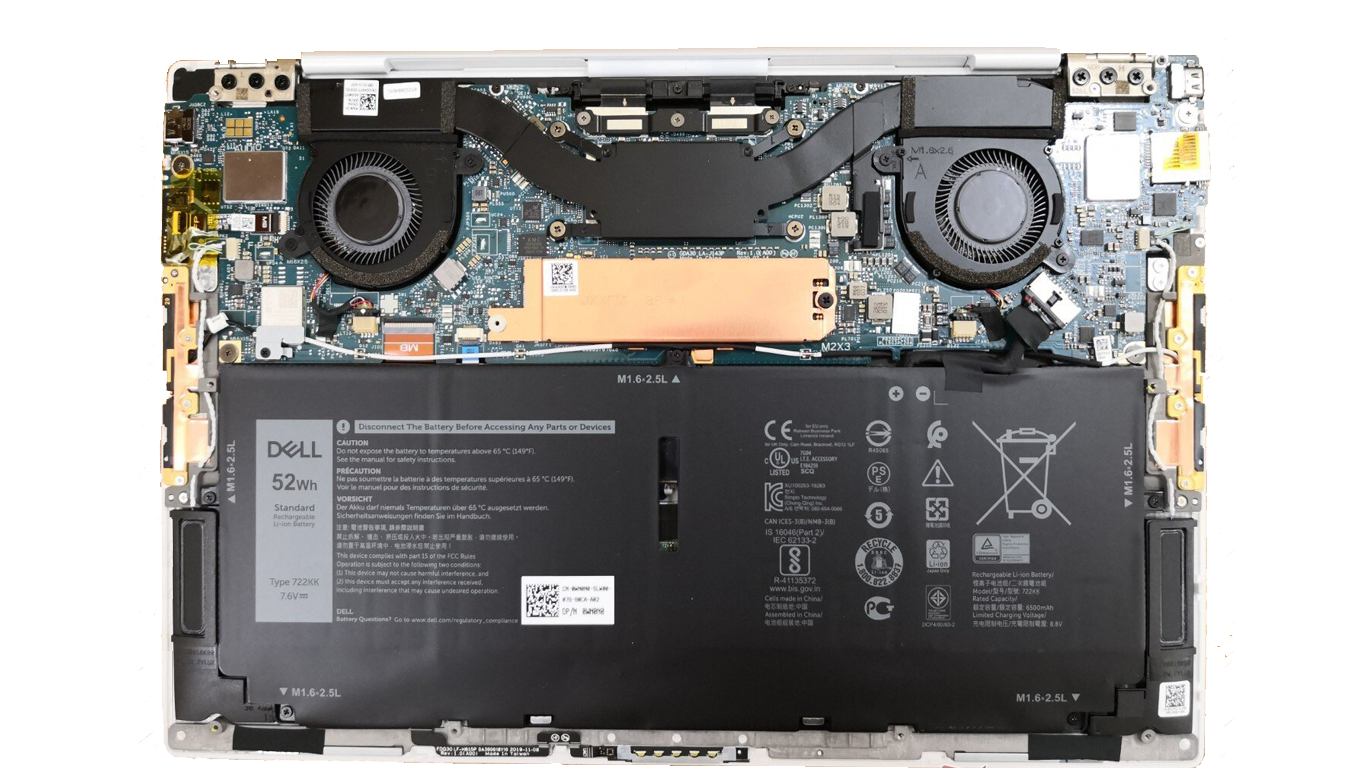 Как мы уже отметили вначале, главным обновлением Dell XPS 13 9310 стал новый процессор Intel 11-го поколения. Это Intel Core i7-1165G7, в нашей версии — 6390R73 (встречаются и младшие модели Intel Core i3-1115G4 и Core i5-1135G7), который относится к энергоэффективным чипам семейства Tiger Lake U. Процессор имеет 4 ядра и 8 потоков, а также интегрированную графику Intel Xe. Каждое ядро работает на частоте 2.8 -4.7 ГГц при нагрузке на одно ядро, а максимальная частота при нагрузке на все ядра не поднимется выше 4.1 ГГц. Кэш-память 3 уровня общая с графическим ядром и составляет 12 МБ. Процессор обладает динамическим TDP 12-28 Вт, что в данной модели как раз и будет выгодным – позволит избегать перегрева, а также повысит общую автономность.