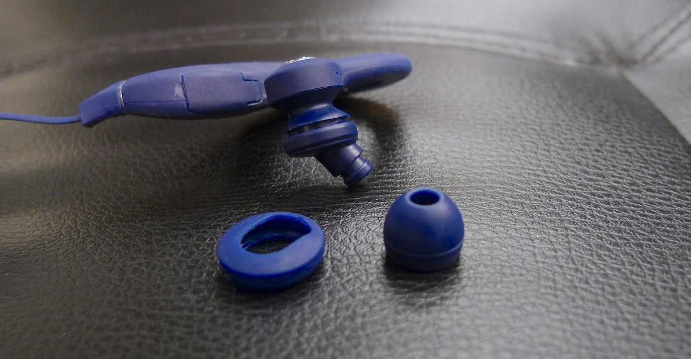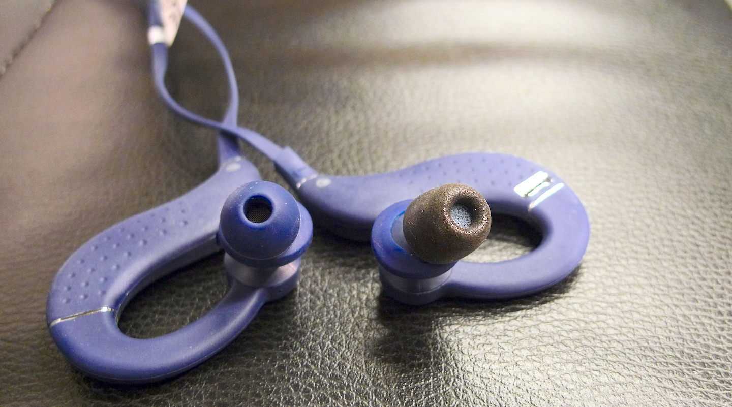 Сама конструкция девайсов с целью более комфортного ношения свободно гнется в нескольких местах. Подбор силиконовых колец и насадок — процедура не самая быстрая, но результативная. В моем случае с силиконовыми насадками наушники сидели недостаточно плотно, а с насадкой из пеноматериала посадка получилась идеальной. Наушники не слетали при прыжках и резких движениях головой, а вес их не ощущался.