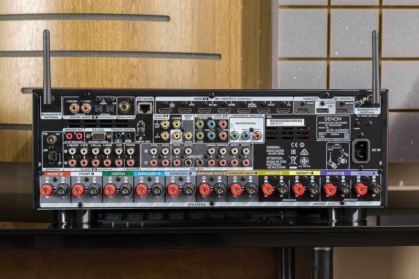 Задняя панель AV-ресивера Denon AVR-X6300 забита коннекторами практически под завязку