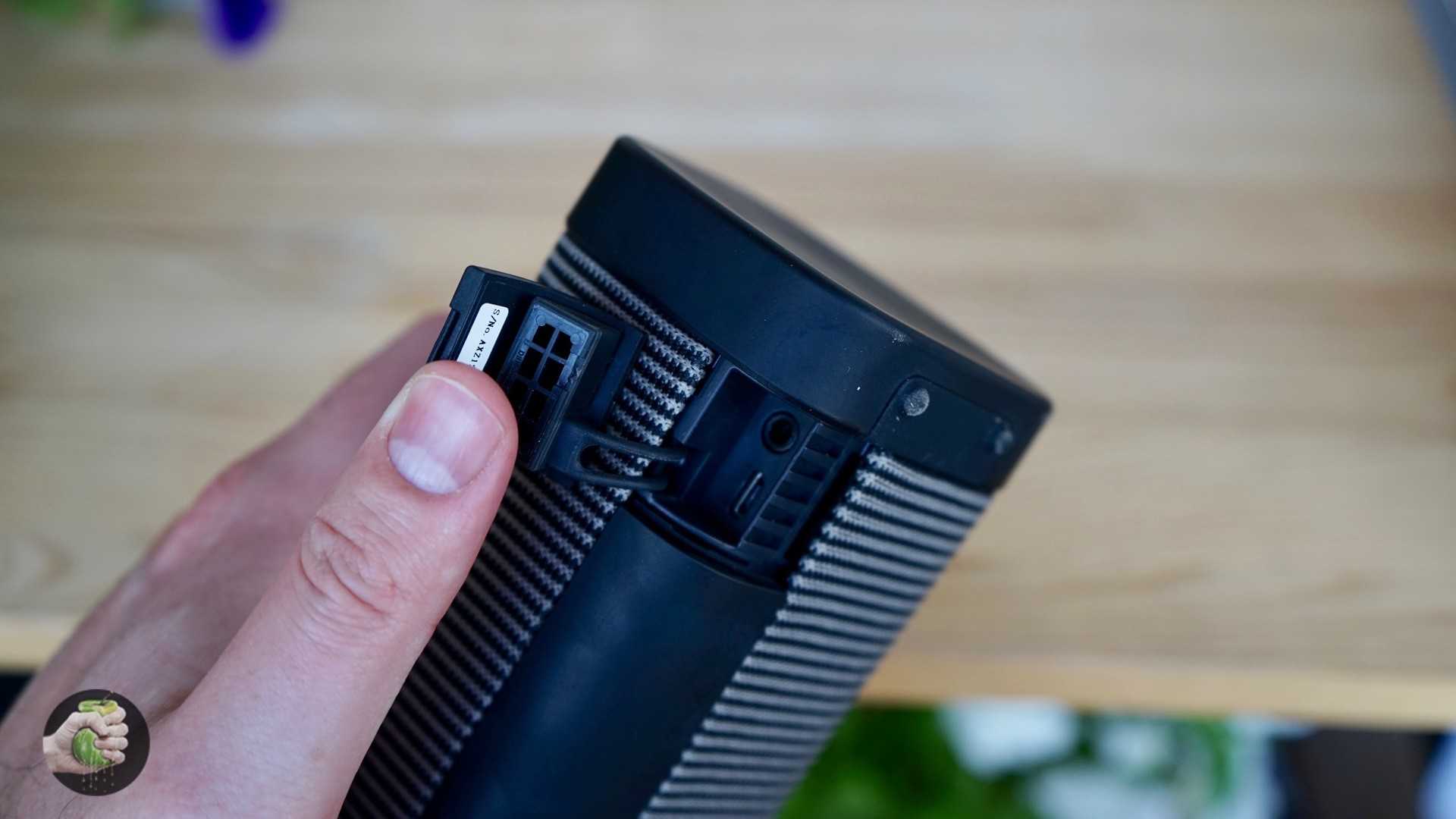 Простая упаковка, минимальная комплектация, есть только кабель microUSB. Надеюсь, в следующем году разъем заменят на USB-C, уже пора. Кроме разъема microUSB, под съемной панелью нашлось место для входа 3,5 мм, так что можно подключить какой-нибудь плеер или другое устройство без Bluetooth.