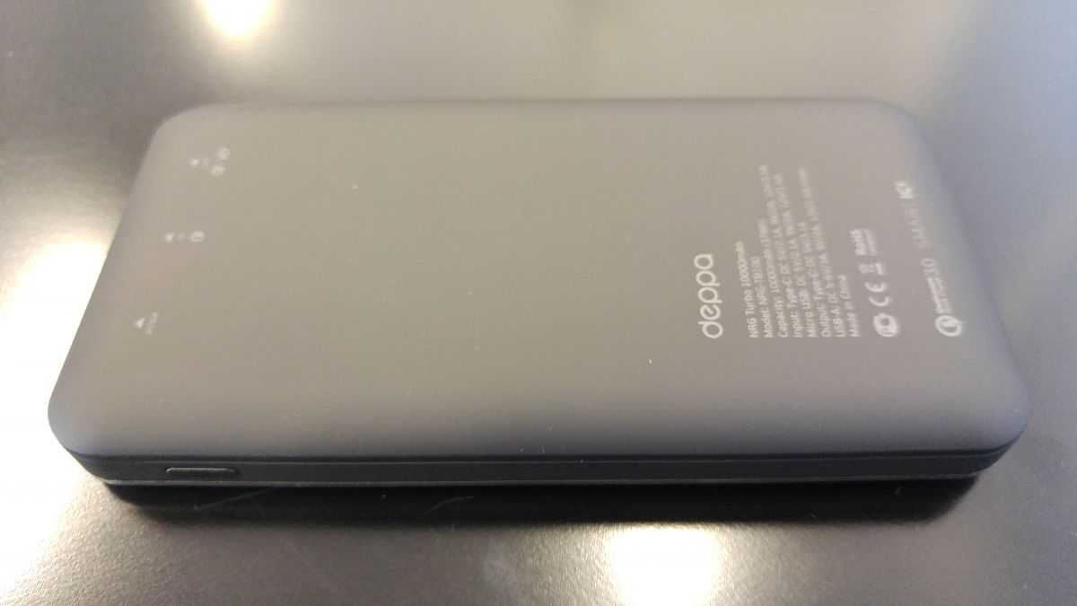 В целом внешний аккумулятор Deppa NRG Turbo 15000 произвел весьма приятные впечатления. В первую очередь, на это повлияло наличие быстрой зарядки Qualcomm Quick Charge 3.0, позволяющей достаточно быстро заряжать как внешние мобильные устройства, так и сам аккумулятор, существенно сокращая время ожидания (за ночь или рабочий день вполне успевает зарядиться). Второй момент касается высокой емкости устройства (15000 мАч) и широкого набора портов (USB тип А и С, micro USB), причем для зарядки аккумулятора и внешних устройств может использоваться пара портов. Ну и не забудем про исполнение – качественный относительно небольшой пластиковый корпус с софт-тач покрытиемделает его удобным для ношения в сумке.