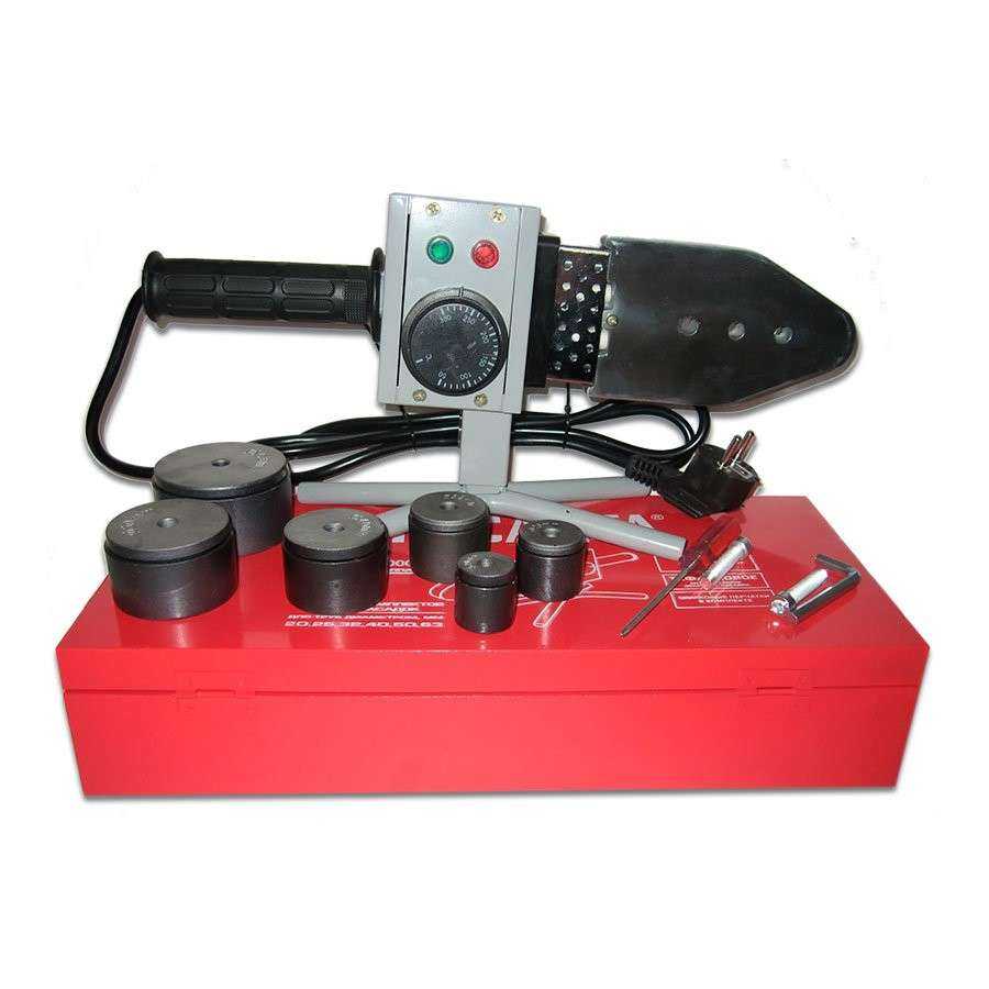 Хороший сварочный аппарат, предназначенный для соединения пластиковых труб раструбного типа. Оснащён регулируемым термостатом. Мощность устройства составляет 1000 Вт, максимальная температура нагрева 300 °C. В комплект входят шесть различных насадок и удобная ручка-держатель. Прекрасно подходит для применения в бытовых условиях. Имеется надёжный кейс для хранения. Само устройство покрыто термозащитным тефлоновым покрытием, что препятствует чрезмерному перегреву или нежелательной поломке.