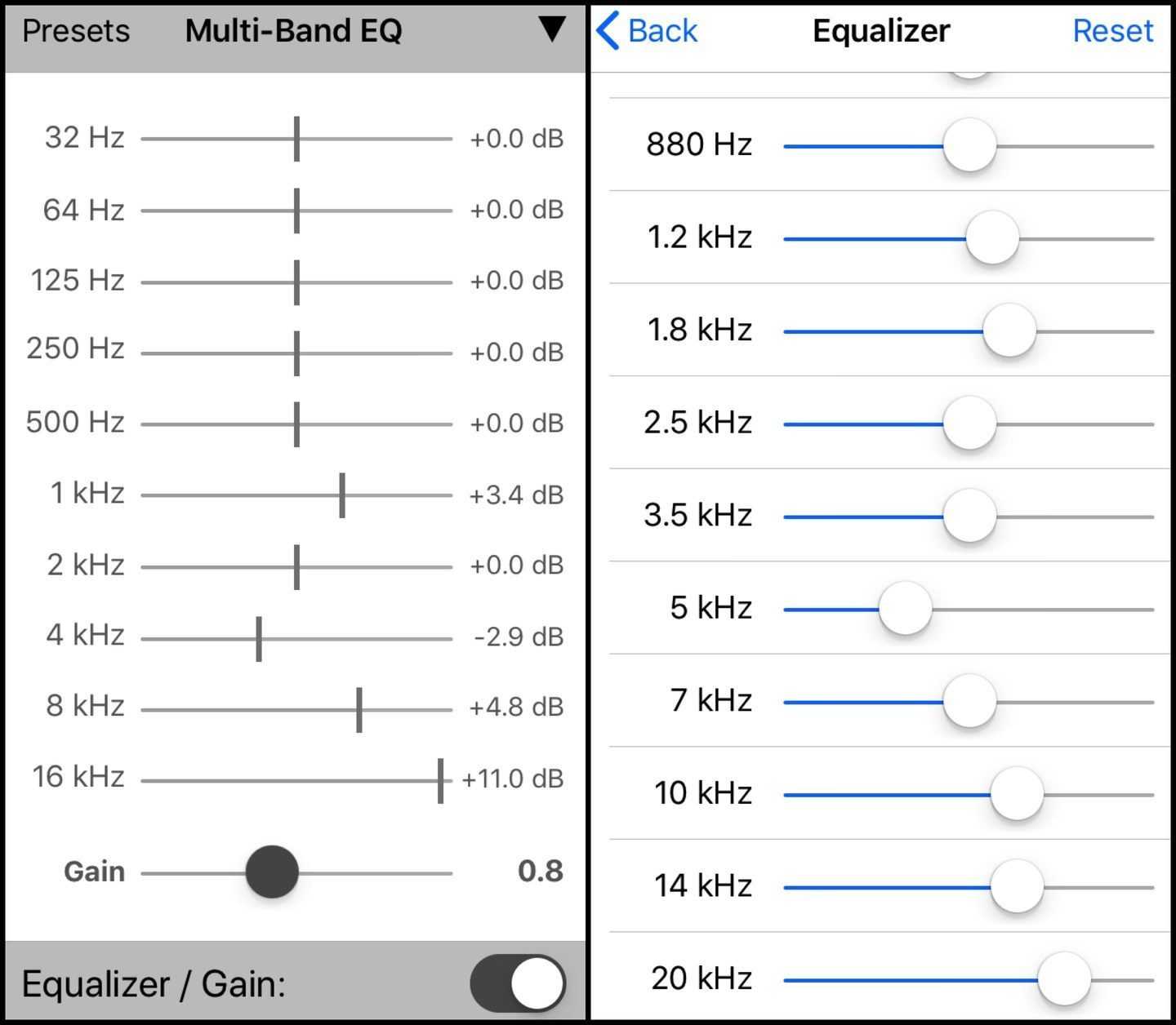 Сейчас в любом софтовом плеере существует такая возможность, в связи с чем привожу два варианта со скриншотами iOS-плееров FLAC Player и Foobar. Результат определенно снимает львиную долю неравномерности АЧХ, и возвращаться к исходному варианту совсем не хочется. Ненужные акценты ослабли, а нужные — выдвинулись. С чем всех и поздравляю.