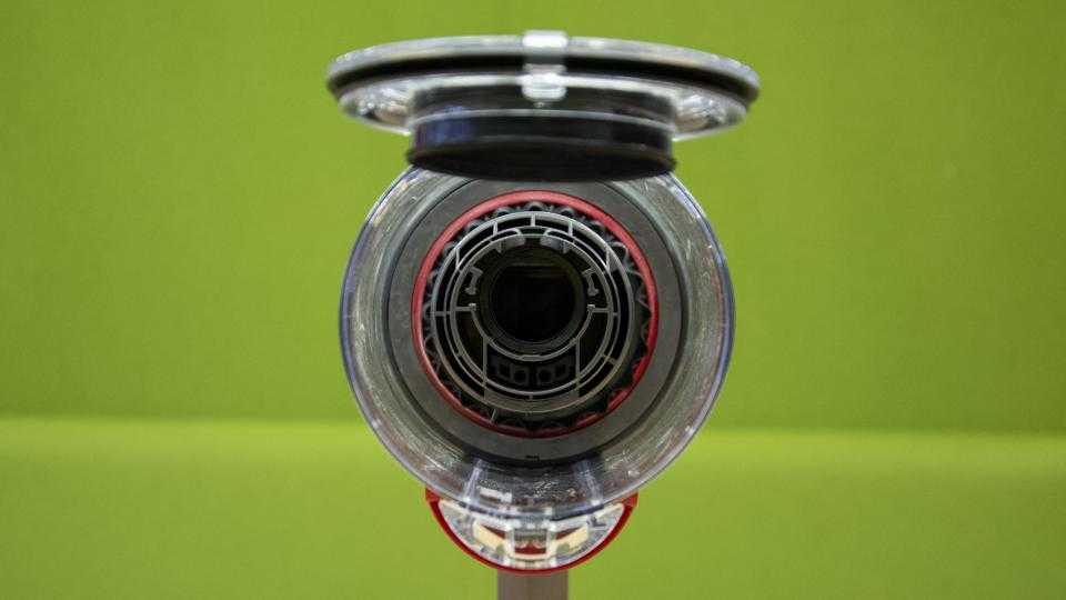 Dyson V11 исправляет ситуацию настолько хорошо, насколько это вообще возможно без мешков для сбора пыли: с нажатием на кнопку контейнер опускается в мусорное ведро, после чего открывается клапан и мусор вываливается наружу. Этот механизм приводится в действие настолько легко и поднимает в воздух такое незначительное количество пыли, что вы успеете закрыть крышку мусорного ведра, прежде чем пылинки до вас долетят.