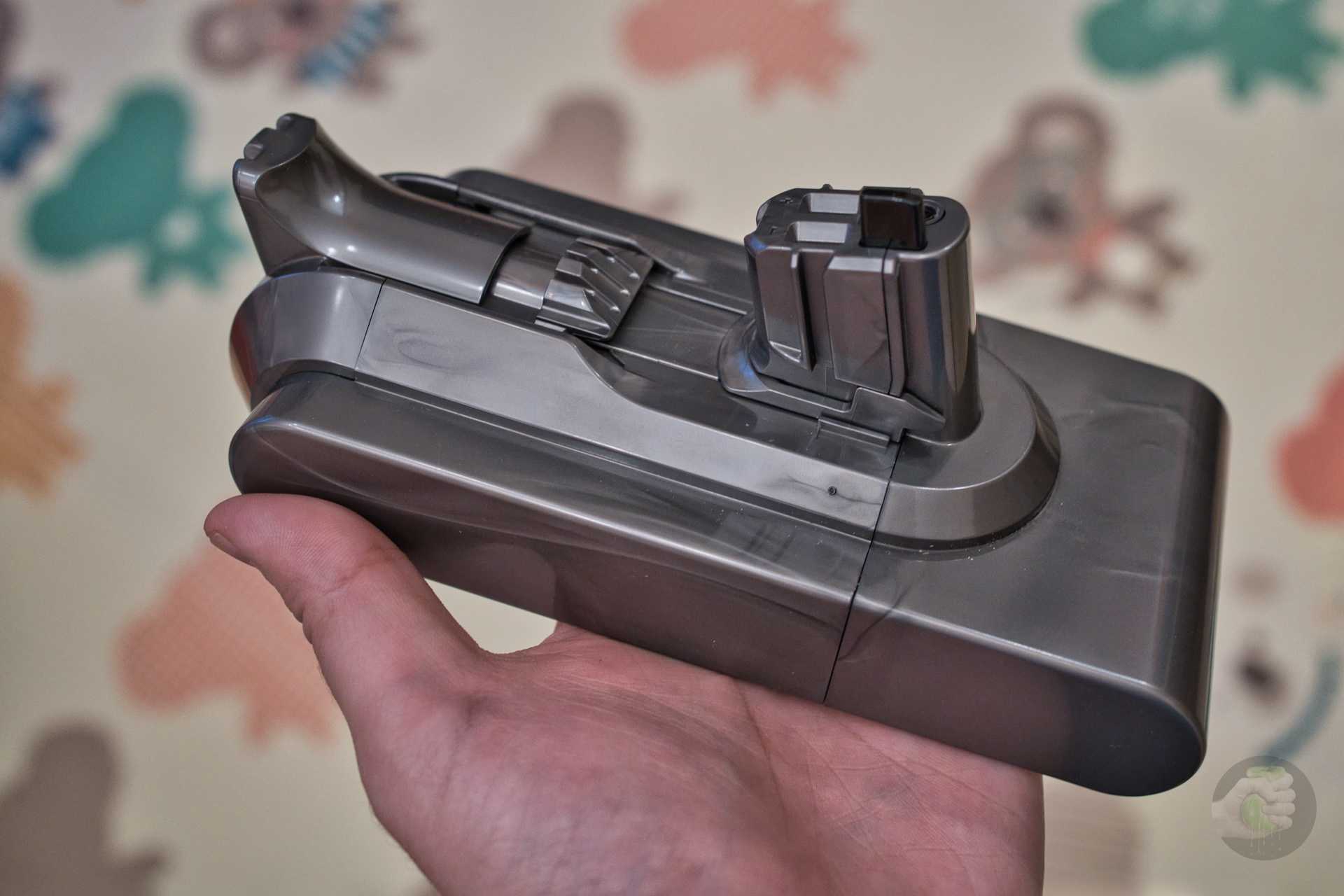 Литий-ионный аккумулятор съёмный, и в более дорогих комплектациях их два. Если у вас нет места для док-станции, то можно просто отсоединять батарею и заряжать, как телефон. Полная зарядка с нуля займёт у вас около 4 часов, и Dyson советует всегда держать его на зарядке благодаря док-станции.