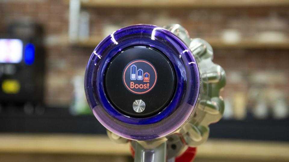 Если вы предпочитаете брать вещи в свои руки, вы можете продлить срок службы батареи. В Eco — самом слабом режиме всасывания — V11 будет длиться 60 минут при полном заряде, самый длинный из трех режимов, а в режиме Boost он длится от пяти до 12 минут, в зависимости от инструмента, который вы подключили. Удивительно, но с прикрепленной головкой High Torque вы получаете самое продолжительное время автономной работы в режиме Boost благодаря этим умным чувствительным к давлению датчикам.