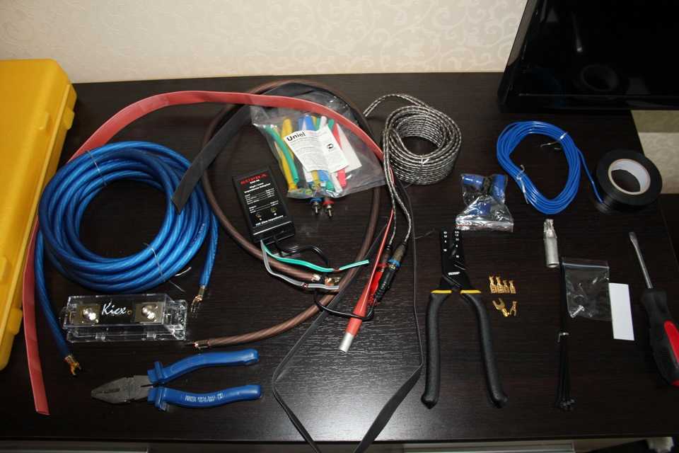 Пришлось полностью переделывать систему питания звука. Список всех покупок: — 5 метров красного силового кабеля 8AWG; — 1 метр черного силового кабеля 8AWG; — 5 метров тонкого управляющего кабеля сечением 0,75 мм²; — Держатель основного предохранителя FH58; — Предохранитель, 40А; — клеммы и стяжки; — 2 метра тюбинга. — межблочные кабели.