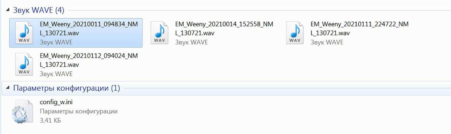 Расширение .wav соответствует формату поддерживаемых файлов. Модель и серийный номер диктофона, с помощью которого записан звуковой файл. Дата выглядит так, привожу пример: 1 января 2021 года — 01/01/2021. Время: ровно 12 ночи — 00:00.