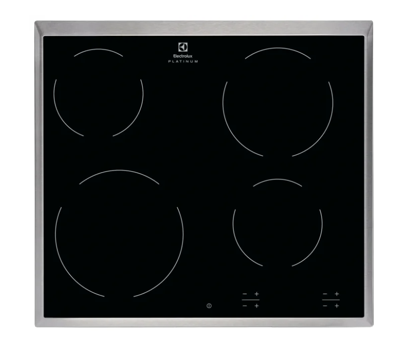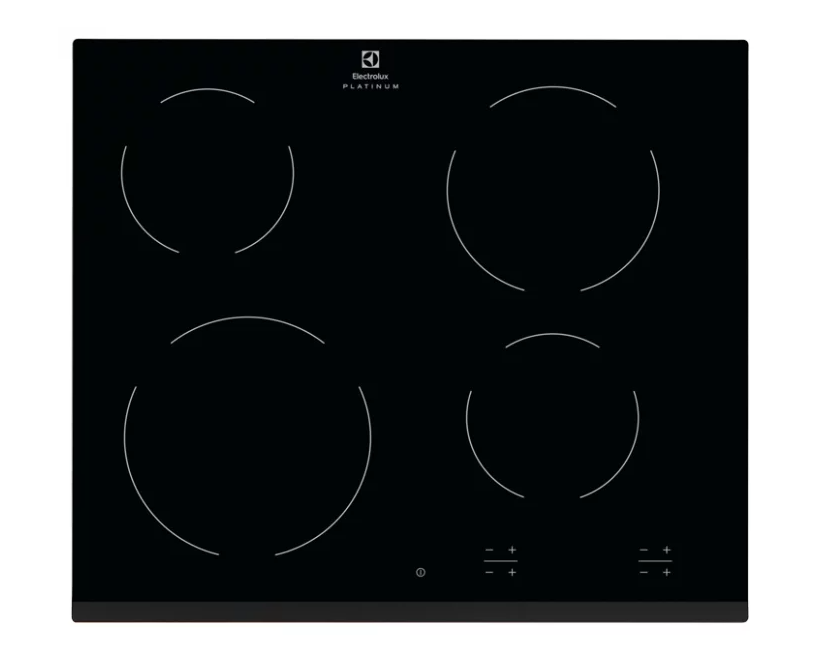 Самой доступной моделью в списке лучших варочных панелей Electrolux с электрическими нагревательными элементами выступает EHF 96240 FK. Она оснащается парой небольших конфорок диаметром 14,5 см, максимальная мощность которых составляет 1,2 кВт. Также на поверхности есть средняя конфорка, имеющая режимы нагрева от 800 Вт до 2,3 кВт, и большая 21-сантиметровая на 2400 Вт. Одна из лучших варочных панелей по надежности управляется при помощи фирменного слайдера DirectAccess