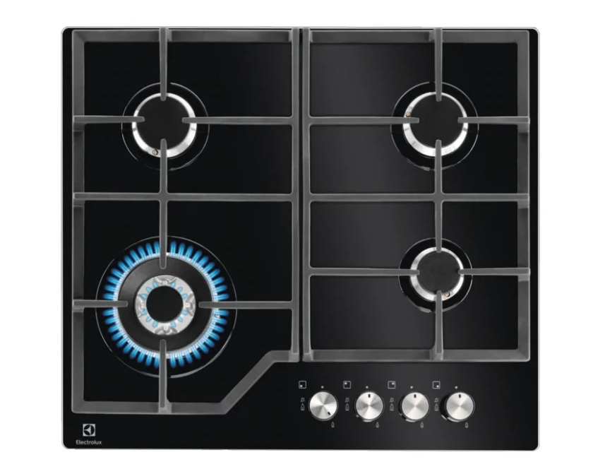 Газовая варочная панель Electrolux оснащается парой стандартных горелок диаметром 8 см, одной маленькой конфоркой размером 6,5 см и WOK на 12,8 см. С последней можно быстро разогреть тонкостенную посуду для приготовления еды при высокой температуре.