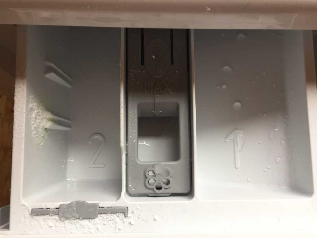 Слева (2) — отсек для порошка основного цикла стирки, справа (1) — для предварительной стирки , а по центру заливается кондиционер