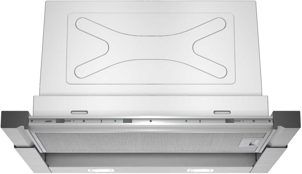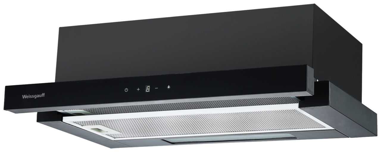 Встраивается в шкаф, имеет выдвижное устройство. Ширина для установки равна 60 см, поэтому подойдет для любой стандартной кухни с проемом для вытяжки. Максимальная производительность составляет 750 куб.м/ч. Двигатель мощностью 340 Вт эффективно всасывает загрязненный воздух, избавляя помещение от запахов и вредных веществ. Имеет 2 жировых фильтра. Снятие и установка элементов осуществляется с помощью специальной кнопки в одно нажатие.