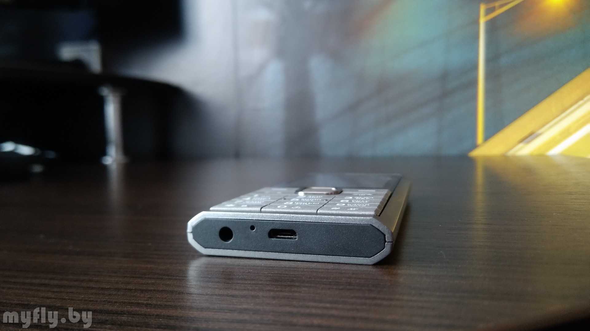 На левой стороне телефона нет никаких клавиш. На правой также их нет, но есть зацеп для снятия крышки. С обратной стороны глазок камеры и динамик. Динамик настоящий, муляжом не является. Камера без вспышки. Сверху светодиодный фонарик. Снизу разъём зарядки, разъём 3.5 мм для наушников и микрофон.