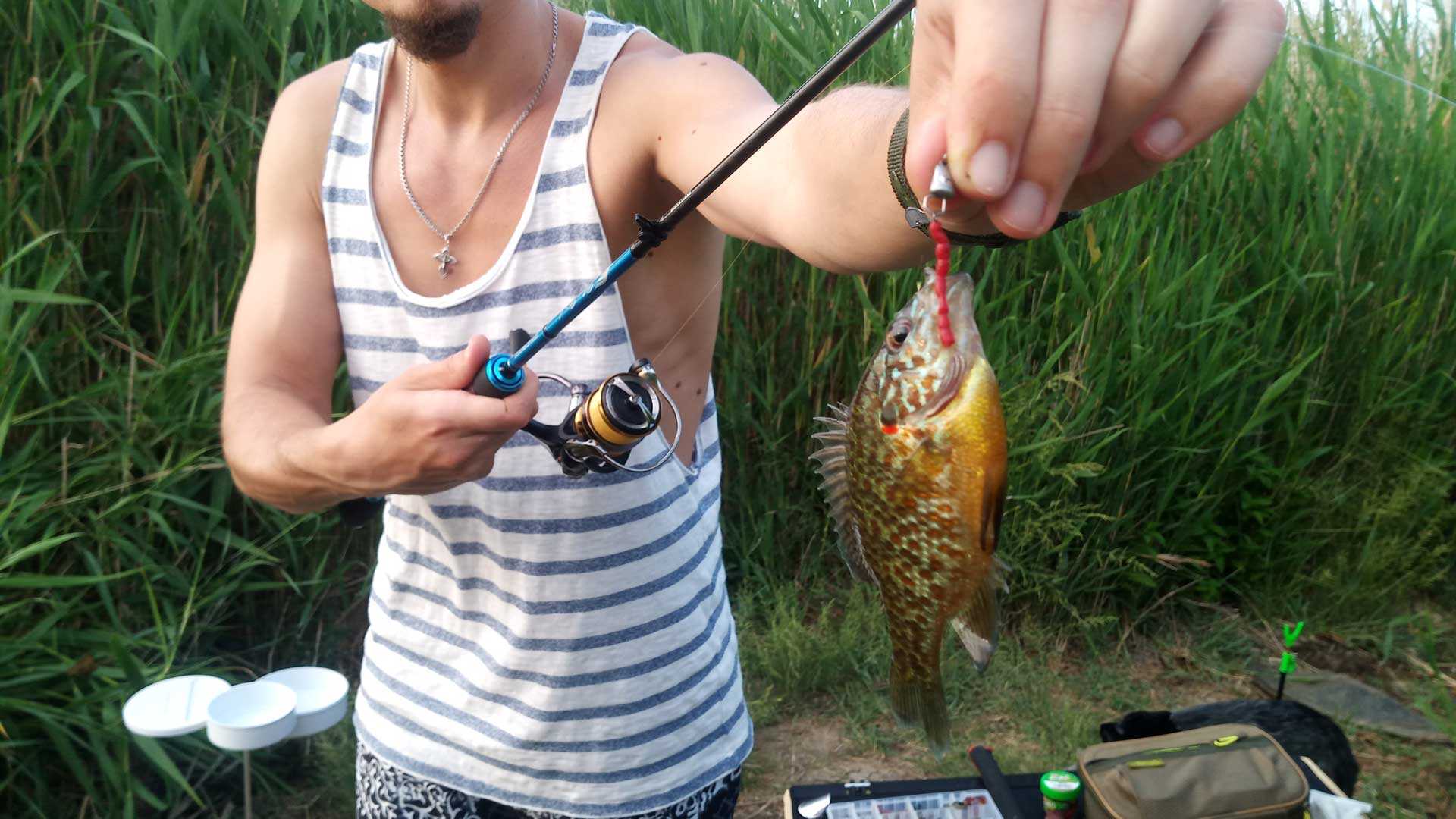 Еще на пресноводных водоемах я ловил с Favorite Blue Bird 682SUL-S на совсем миниатюрные приманки, вроде искусственного мотыля Berkley Gulp Alive Maxi Blood Worms. В основном мне попадался солнечный окунь (довольно маленькая хищная рыбка, которой кишат все водоемы). Чувствительность бланка вполне позволяет получать положительные эмоции даже от столь небольших трофеев.