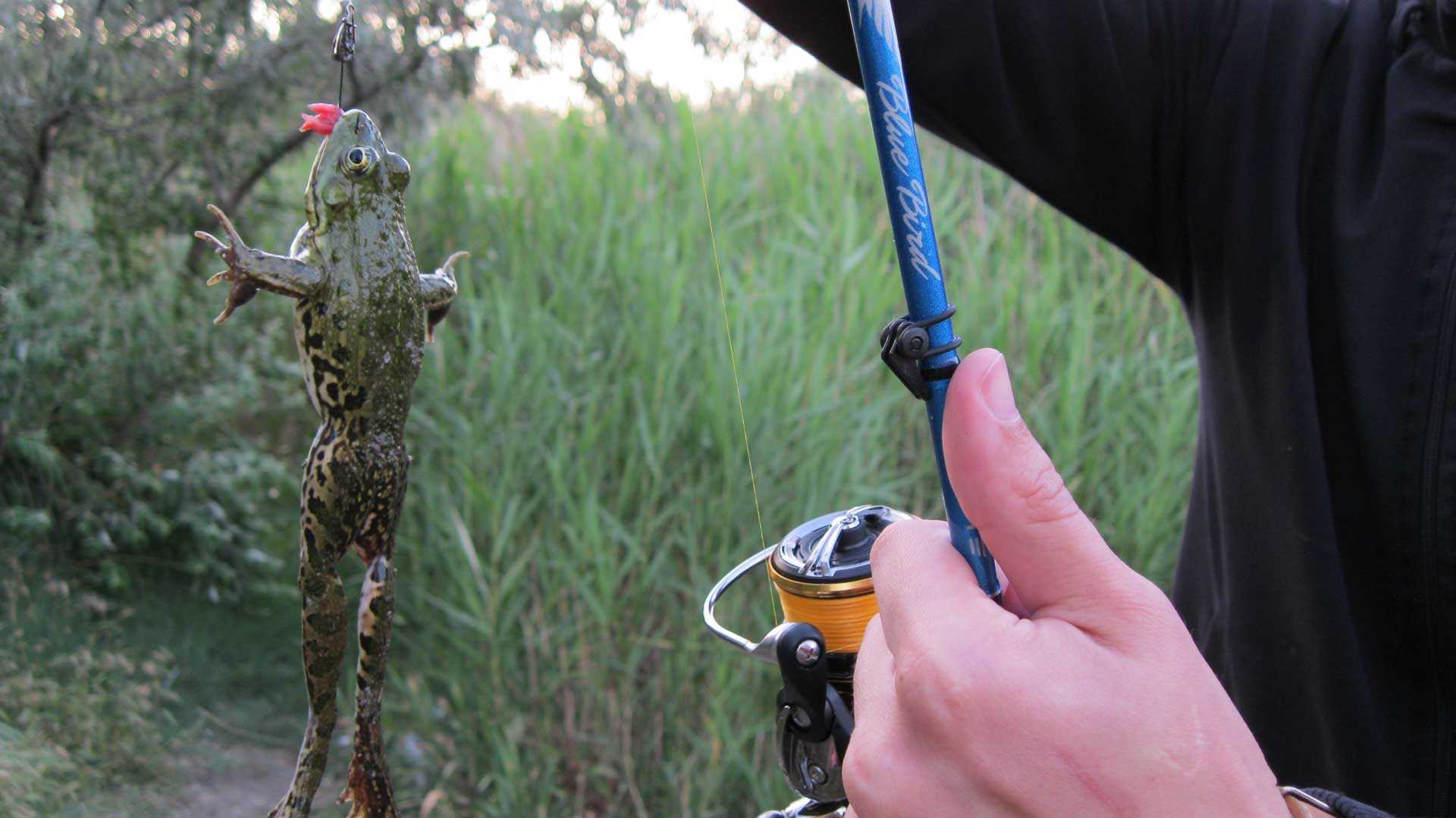 Один раз при ловле с Blue Bird мне попался весьма неожиданный трофей – лягушка. Вываживание длилось не долго, лягушка сопротивлялась не очень сильно, но все равно было весело.