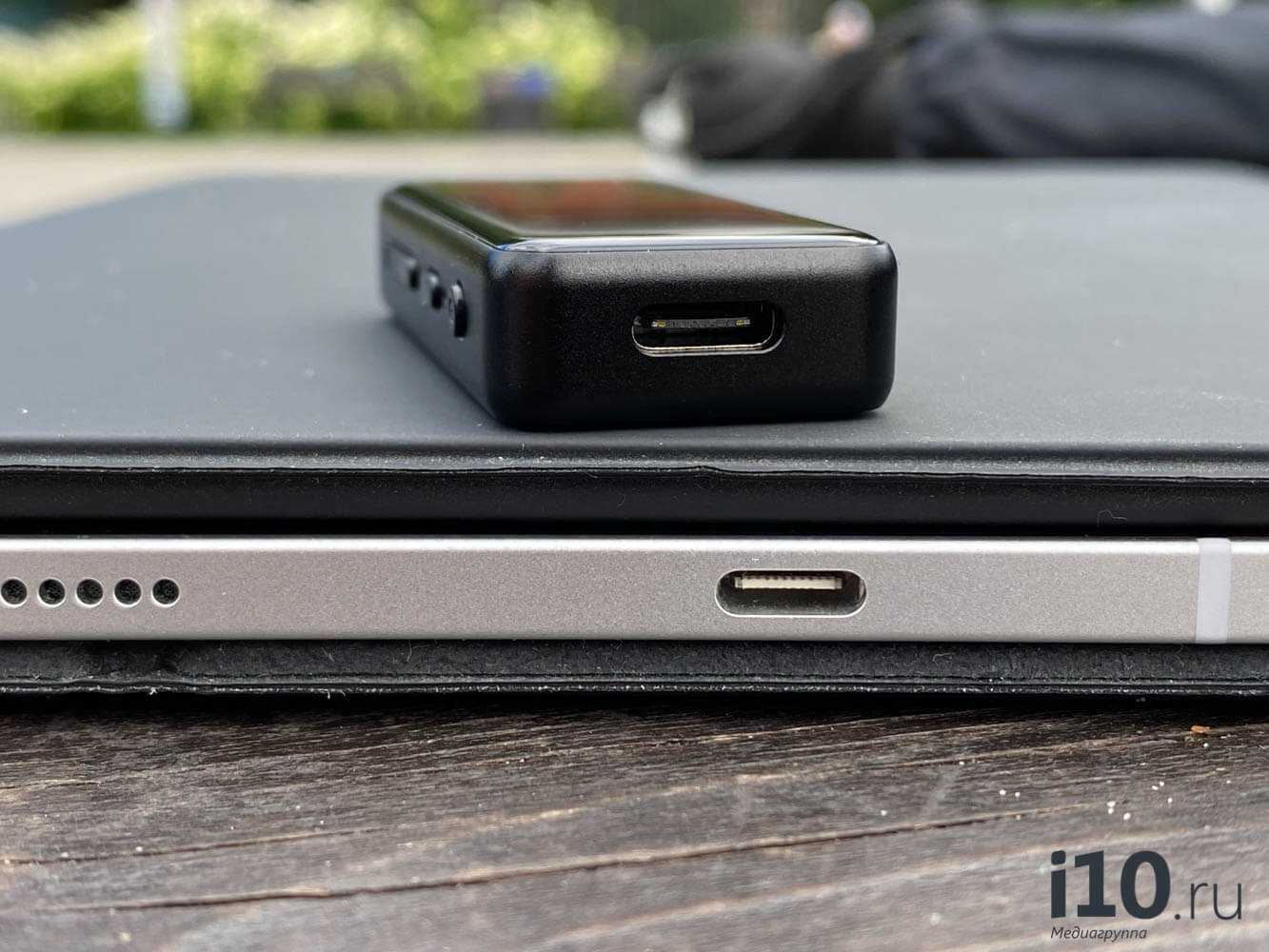 И USB вход, и наушниковый выход расположены снизу, поэтому крупные 3.5 мм штекеры сложно использовать одновременно с подключенным USB. Для зарядки используется USB-C, полностью BTR3 заряжается где-то за 1 час 20 минут и этого хватает на 9-11 часов активного использования. Так же этот порт можно использовать для того чтоб подключить ресивер в роли USB ЦАПа, в первой версии прошивки для этого надо было включать специальный режим вручную, но последние прошивки добавили режим автоопределения.