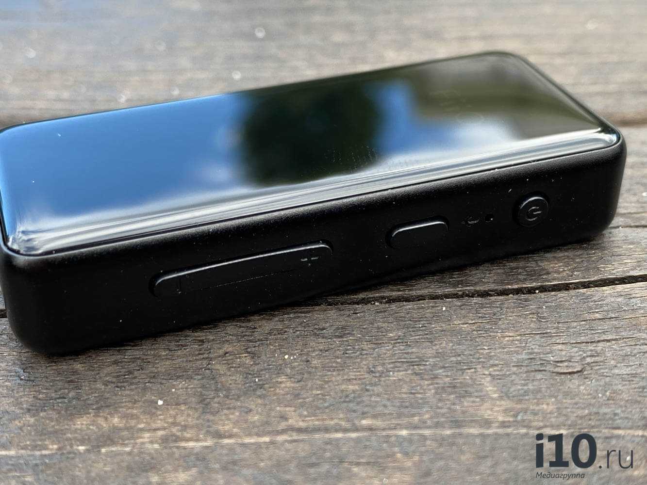 На правой грани находятся кнопка включения/выключения, отверстие микрофона, отдельная «умная» кнопка, отвечающая за воспроизведение и паузу, вызов голосового помощника и многие другие функции, а так же качелька громкости. Короткие нажатия на неё изменяют громкость, длинные — переключают треки. Тут, кстати, есть одна особенность, которая для меня выглядит вполне логично, но отзывы в интернете говорят, что не все разделяют моё мнение. Дело в том, что нажатие качельки вверх увеличивает громкость, но при этом, длинное её удержание вызывает переход на предыдущий трек, и многих это сбивает с толку. Для меня же это выглядит логично, так как условный индикатор громкости всегда растёт вверх, а список треков, наоборот, идёт сверху вниз, поэтому такая работа этих клавиш мне кажется вполне нормальной. Впрочем, почти наверняка, со временем регулировку этого поведения добавят во встроенную утилиту настроек.