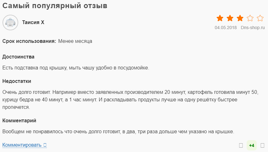 - Рекомендации производителя по времени готовки не совпадают с реальными.