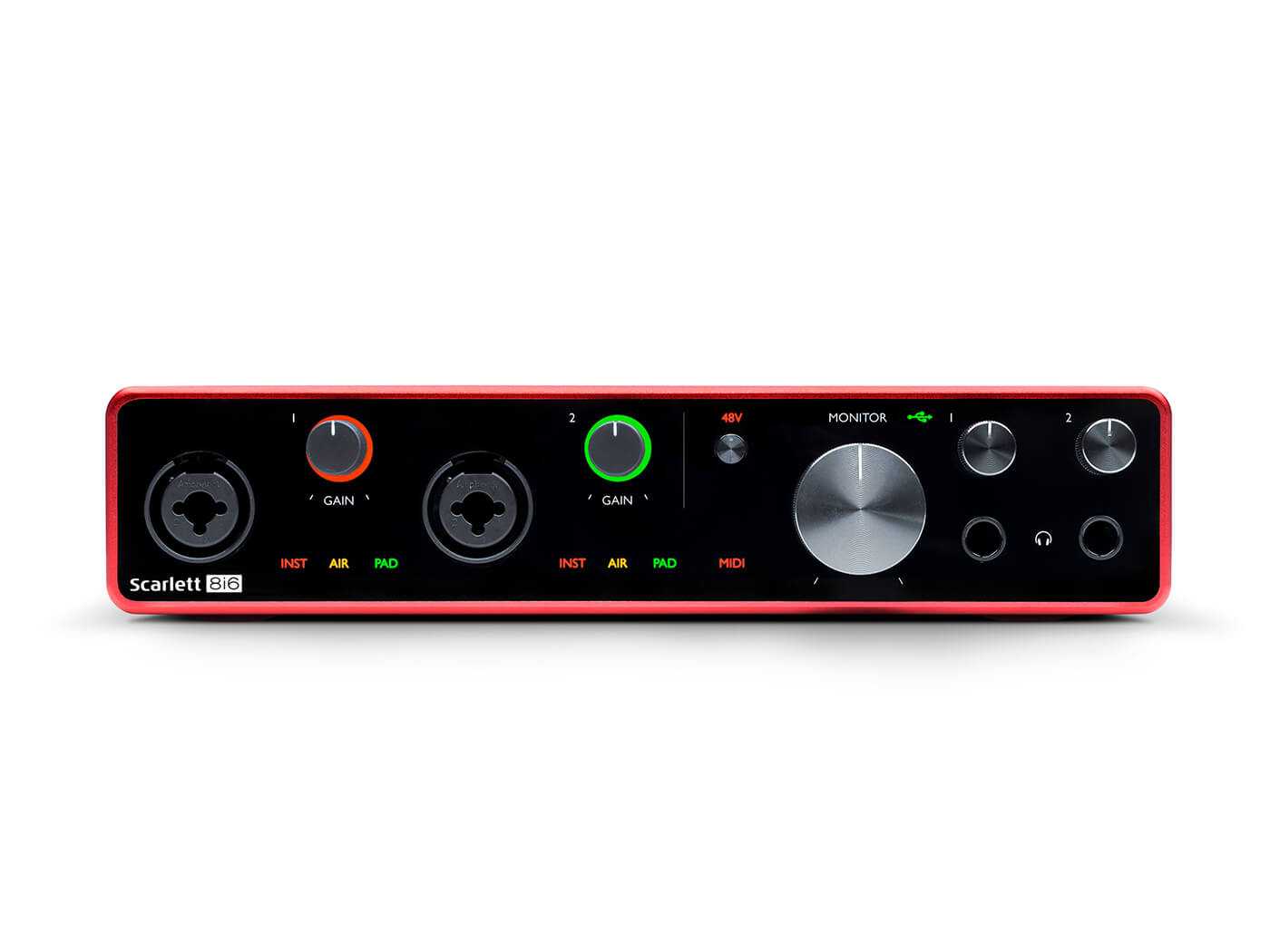 Featuring six configurations of ins and outs with the best performing Scarlett mic preamps the range has ever heard, now with Air, high headroom instrument inputs, and high-performance converters, Scarlett is enabling millions of musicians, songwriters and producers to record, mix and playback audio in studio quality everywhere, all the time.Focusrite