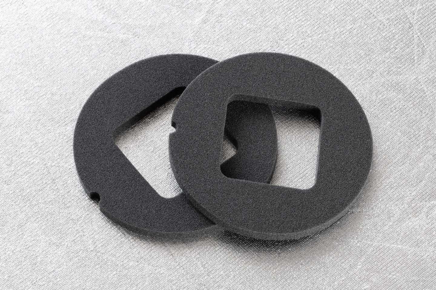 Под амбушюрами располагаются поролоновые вставки. Форма и размер квадратных вырезов соответствуют рабочей площади планарных излучателей