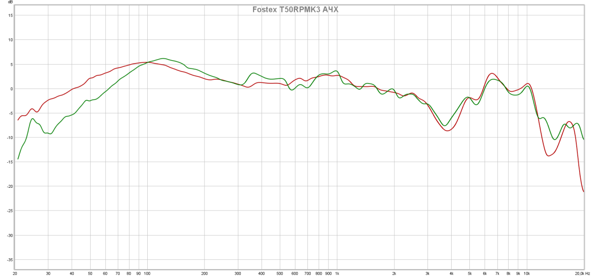 Силиконовые уши тестового стенда в отличие от моих остались довольны размером и формой амбушюр наушников. Обе модели сидели идеально и охватывали небольшие ушные раковины стенда полностью. Степень шумоизоляции у модели T40RP получилась высокая, в случае с T50RP пришлось соблюдать во время замера режим абсолютной тишины. Полуоткрытое оформление глушило только часть звуков, мелкие шорохи и шелест, а все что погромче попадало в микрофоны стенда без ограничений.