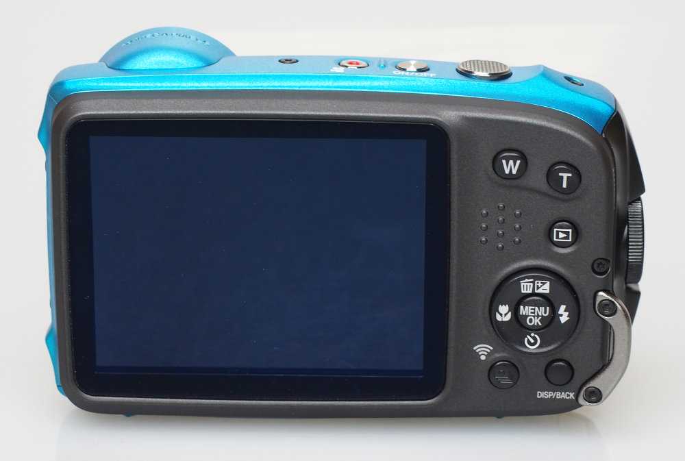 The Fujifilm FinePix XP120 looks good and even came with a colour matched wrist strap. The camera feels quite well built for a (mostly) plastic camera. There is a small rubber grip on the front of the camera, and the rear has a slight rubber feel. The shutter release button is a good size, and has a decent texture to it, to help find it.