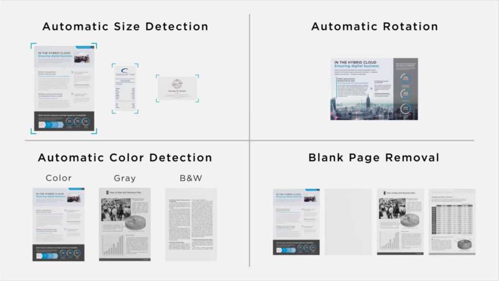 ScanSnap Cloud автоматически распознаёт документы вплоть до четырёх разных типов и сохраняет