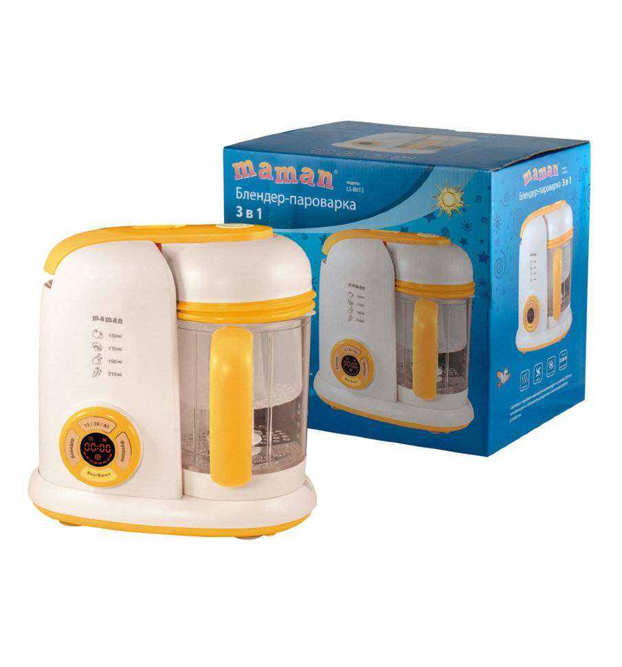 Блендер-пароварка с первых дней прикорма станет для многих родителей незаменимым агрегатом в приготовлении пищи. Для использования представленного приспособления не понадобится особых навыков. Простыми, а главное быстрыми движениями с его помощью можно приготовить овощи на пару и сразу же измельчить их встроенным блендером. Малыш получит вкусное и полезное пюре из только что приготовленных продуктов. Агрегат сохраняет все витамины и микроэлементы. Управлять им довольно просто, в комплекте идет подробная инструкция, где описаны все нюансы использования. Детское питание для малыша готовится за короткое время. Агрегат легко разбирается и очищается от остатков еды. Имеется защита от нежелательной работы. При неправильной или неполной сборке техника не будет работать, чтобы избежать случаев травматизма. Корпус и чаша выполнены из высококачественного пластика. В комплектации также имеется лопатка, корзина, чаша с блоком лезвий. Основной цвет, в котором выполнена техника – белый, дополнительные – синий, лазурный, оливковый, голубой.
