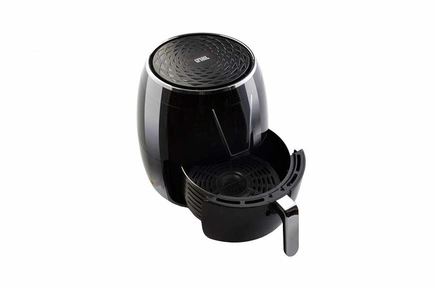 Крышка накрывает стеклянную нижнюю часть прибора, которая в зависимости от модели аэрогриля может иметь разный объем: от семи до семнадцати литров. Некоторые аэрогрили имеют дополнительные «расширительные кольца», с помощью которых возможно увеличение основного объема чаши на четыре-пять литров. Подробнее, для чего нужен аэрогриль вы можете почитать в нашей статье.